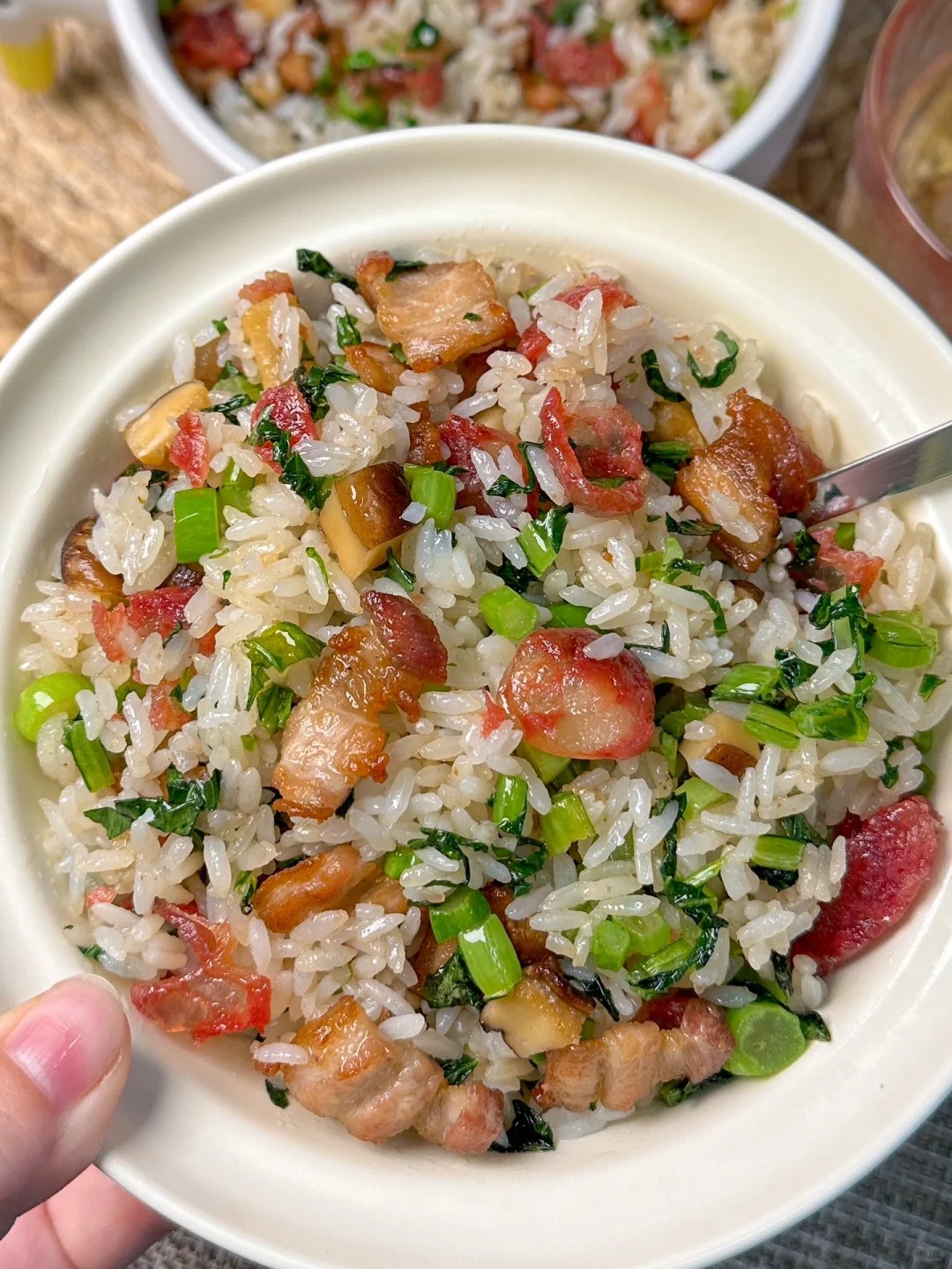 (xiānggū làcháng càifàn) — 향버섯 중국소시지 채소밥 (밥도둑 버전)