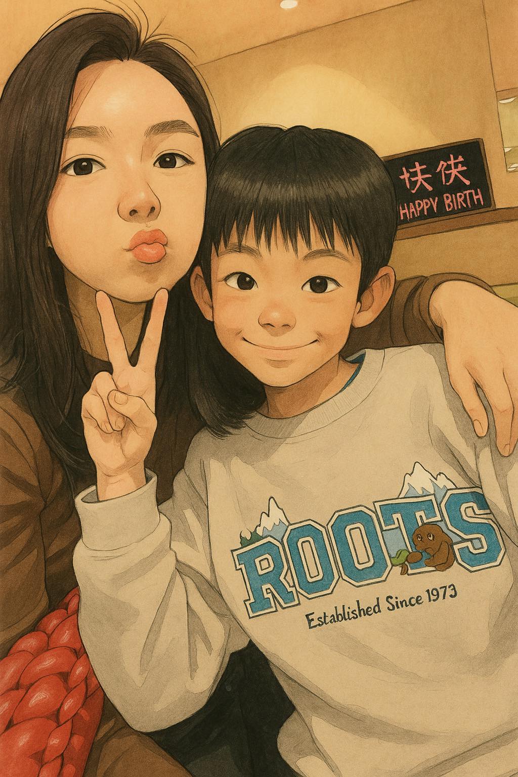 (아이에게 있어 엄마는 가장 중요한 사람이다.) - 對我來說,幸福就是一家人在一起。