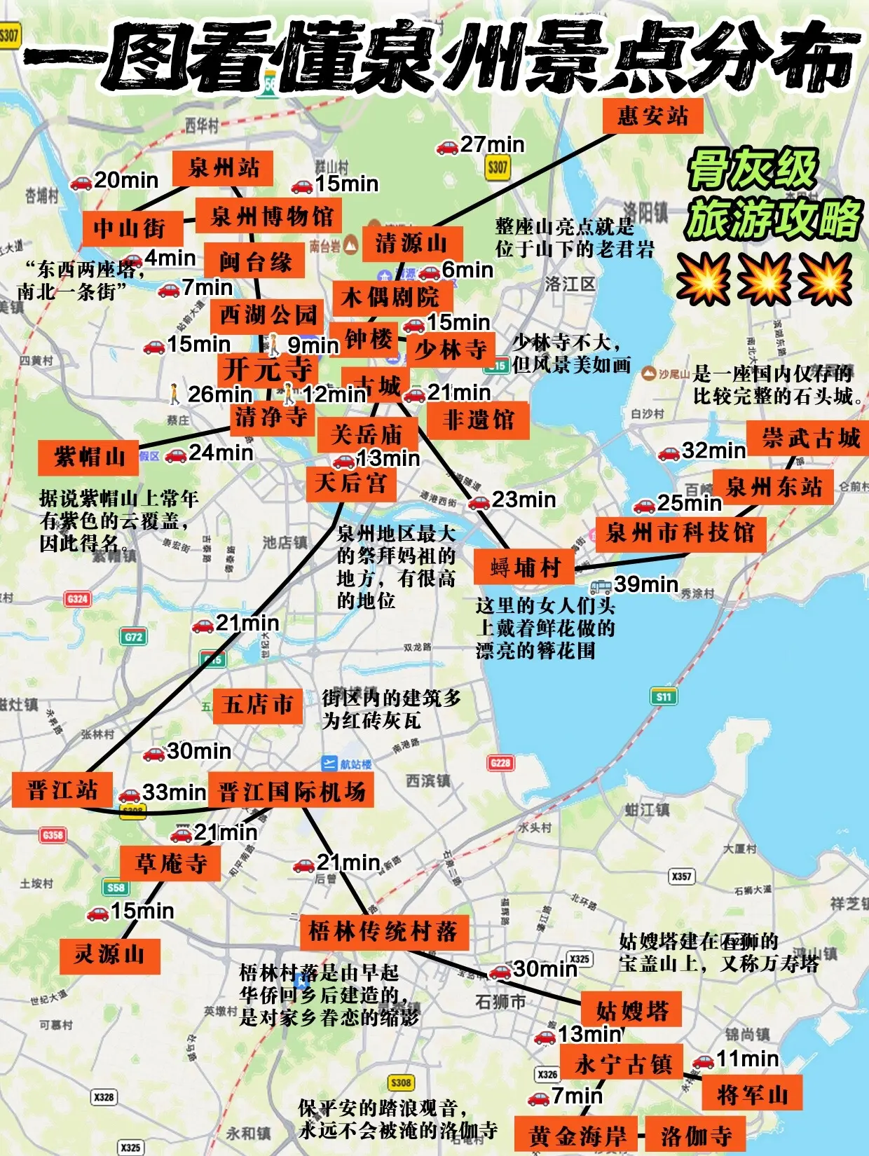 - 高铁/动车:厦门至泉州的高铁车程约20分钟,非常快捷。