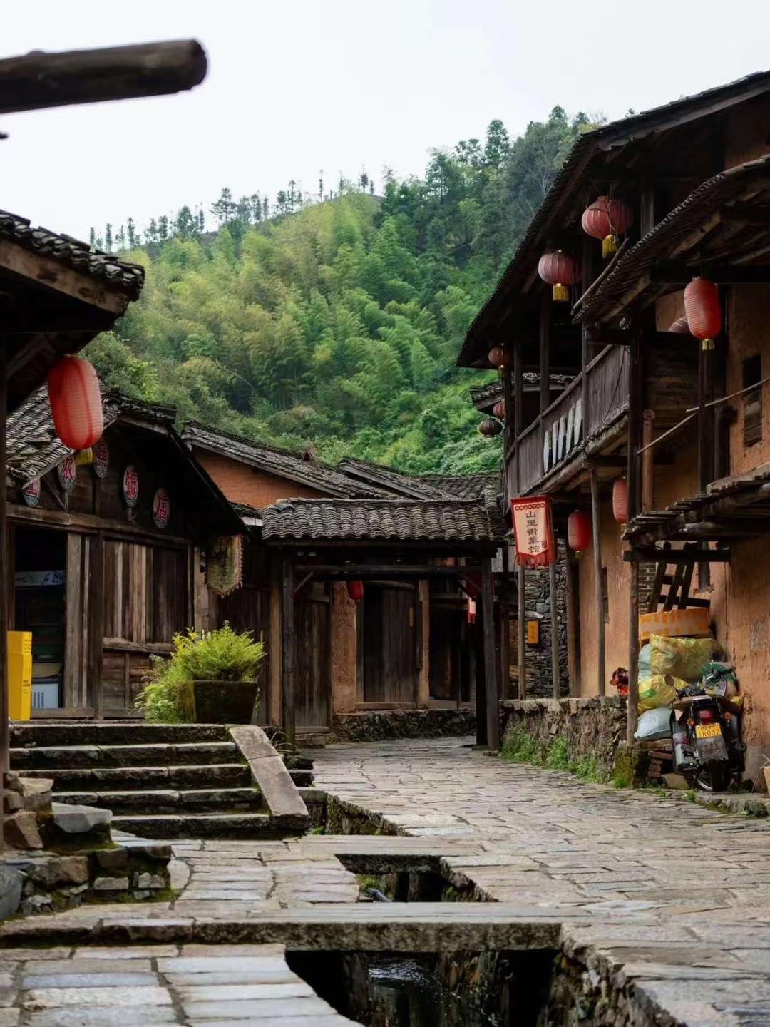 踩著青石板穿過黃泥牆黑瓦房