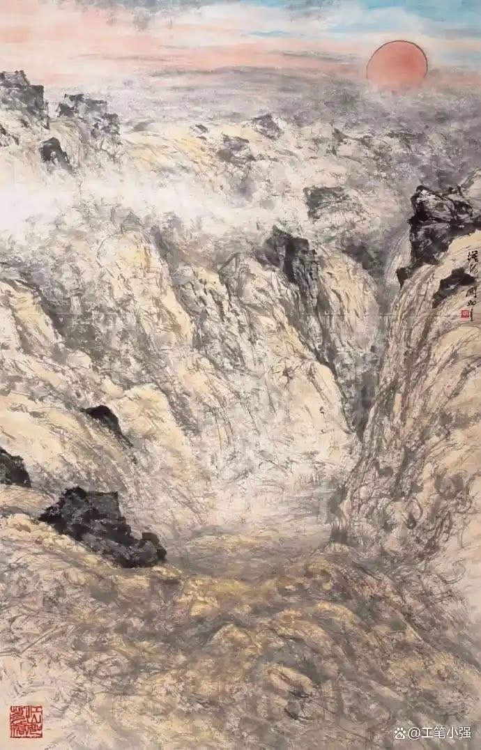 在20世纪中国画坛的星空中,关山月犹如一颗璀璨的星辰,以“折中中西,融汇古今”的创作理念,在山水画领域开辟出一条兼具传统韵味与现代精神的革新之路。作为岭南画派的代表人物,他的作品不仅承载着家国情怀,更以独特的笔墨语言,记录了一个时代的变迁与民族精神的觉醒。