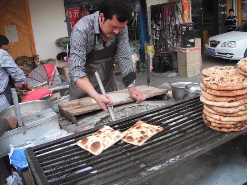 [진행자] 一張桌子上同時擺著中原傳來的油条、本地的囊、草原游牧民族帶來的奶疙瘩,還有一種源自中亞的甜點叫“哈利瓦”。感覺就像把整條絲綢之路都吃進了肚子裡。 (yìzhāng zhuōzi shàng tóngshí bǎizhe zhōngyuán chuánlái de yóutiáo, běndì de náng, cǎoyuán yóumù mínzú dàilái de nǎigēda, hái yǒuyìzhǒng yuánzì zhōngyà de tiándiǎn jiào “hālǐwǎ”. gǎnjué jiù xiàng bǎ zhěngtiáo sīchóu zhīlù dōu chījìn le dùzi lǐ.) 탁자 하나에 중원에서 온 요우티아오(튀김빵), 현지의 난, 유목 민족의 유제품(나이거다), 그리고 중앙아시아의 디저트인 할바(哈利瓦)가 한데 차려져 있어요. 실크로드 전체를 먹는 기분일 거예요.