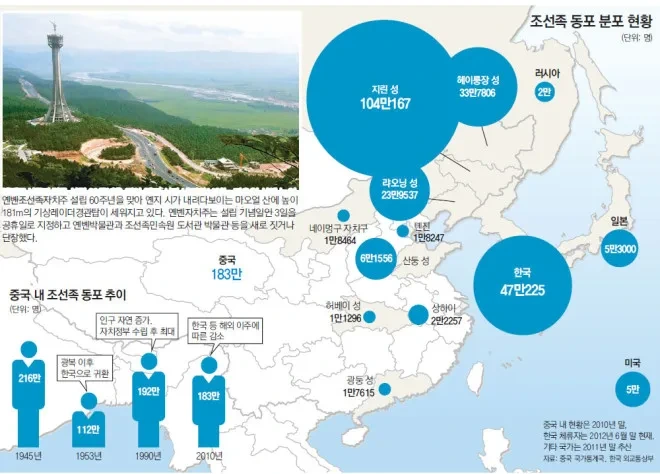 [진행자] 吉林省的延邊朝鮮族自治州,對,就是延邊。所以今天咱們就順著這些線索來一次深度的探尋。(jílínshěng de yánbiān cháoxiǎnzú zìzhìzhōu, duì, jiùshì yánbiān. suǒyǐ jīntiān zánmen jiù shùnzhe zhèxiē xiànsuǒ lái yícì shēndù de tànxún.) 길림성 연변 조선족 자치주, 맞아요, 바로 연변입니다. 그래서 오늘 우리는 이 단서들을 따라 깊이 있는 탐구를 해보려 합니다.