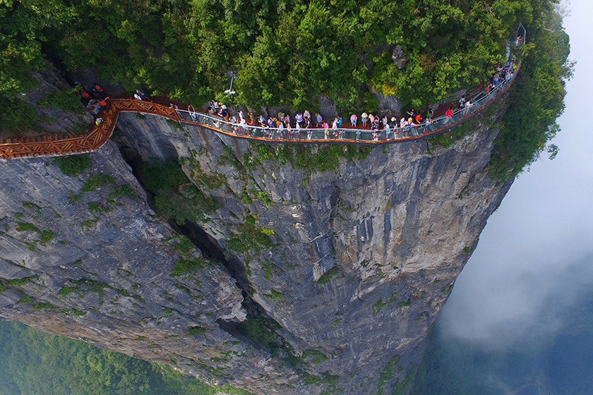 | 유리잔도 (玻璃栈道) | 천문산 절벽에 설치된 유리 바닥 길. 발밑으로 아찔한 높이의 절벽을 볼 수 있어 스릴 넘치는 체험을 제공한다. |