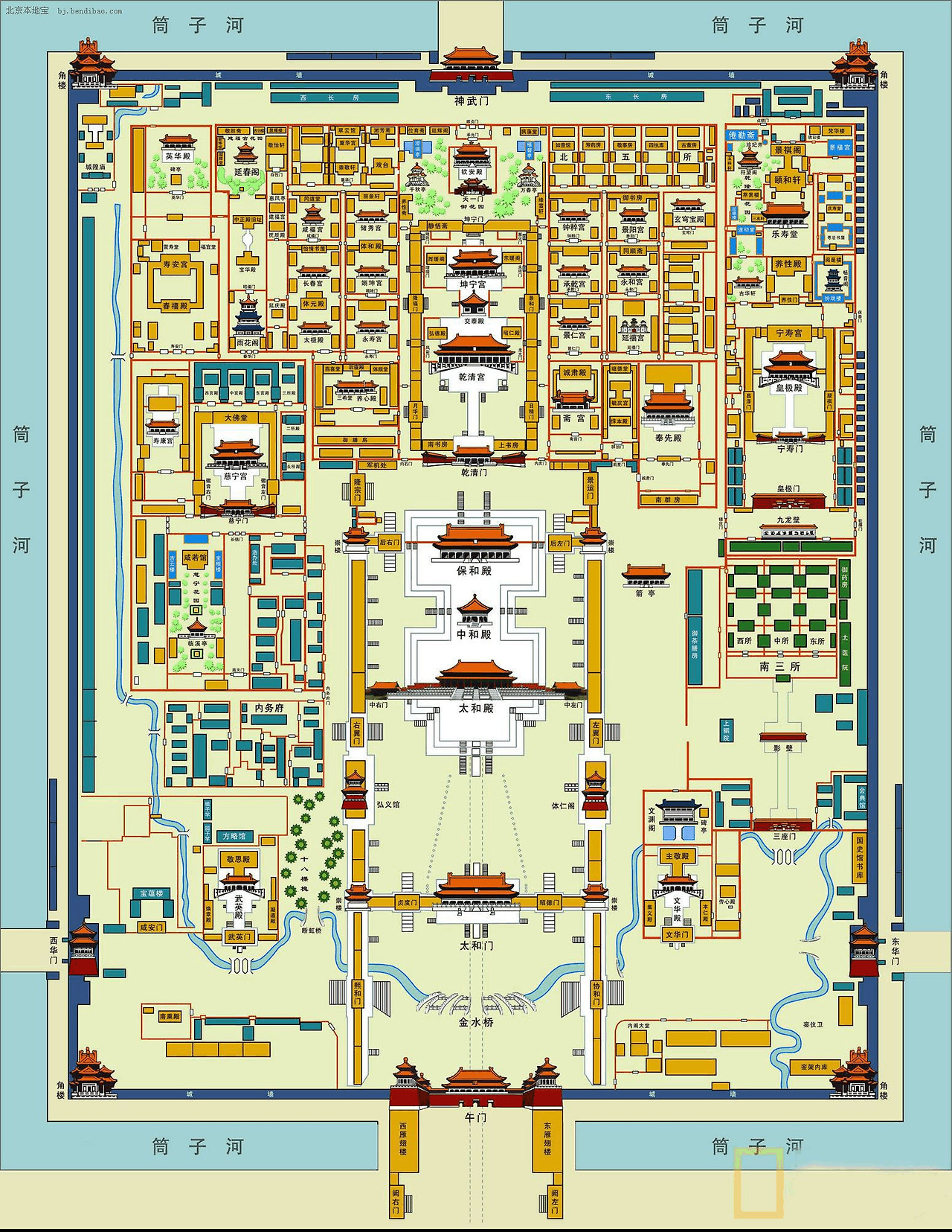 | 중심축과 대칭 구조 | 천하의 중심, 질서와 위계 | 남북의 중심축 위에 주요 전각들을 일직선으로 배치하여 황제의 유일무이한 권위를 강조. 외조(정치 공간)와 내정(생활 공간)으로 구분. |