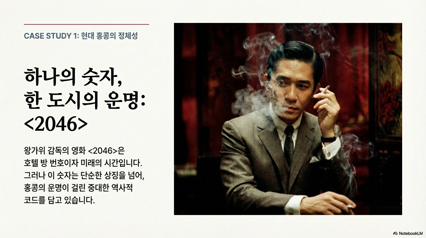 - 맥락: 영화 『2046』을 설명할 때 핵심이 되는 단어입니다. 홍콩인들에게 1997년 반환 이후 약속된 50년(2047년까지)은 단순히 흐르는 시간이 아니라, '자유의 유효기간'이 줄어드는 카운트다운이라는 공포를 담고 있습니다.