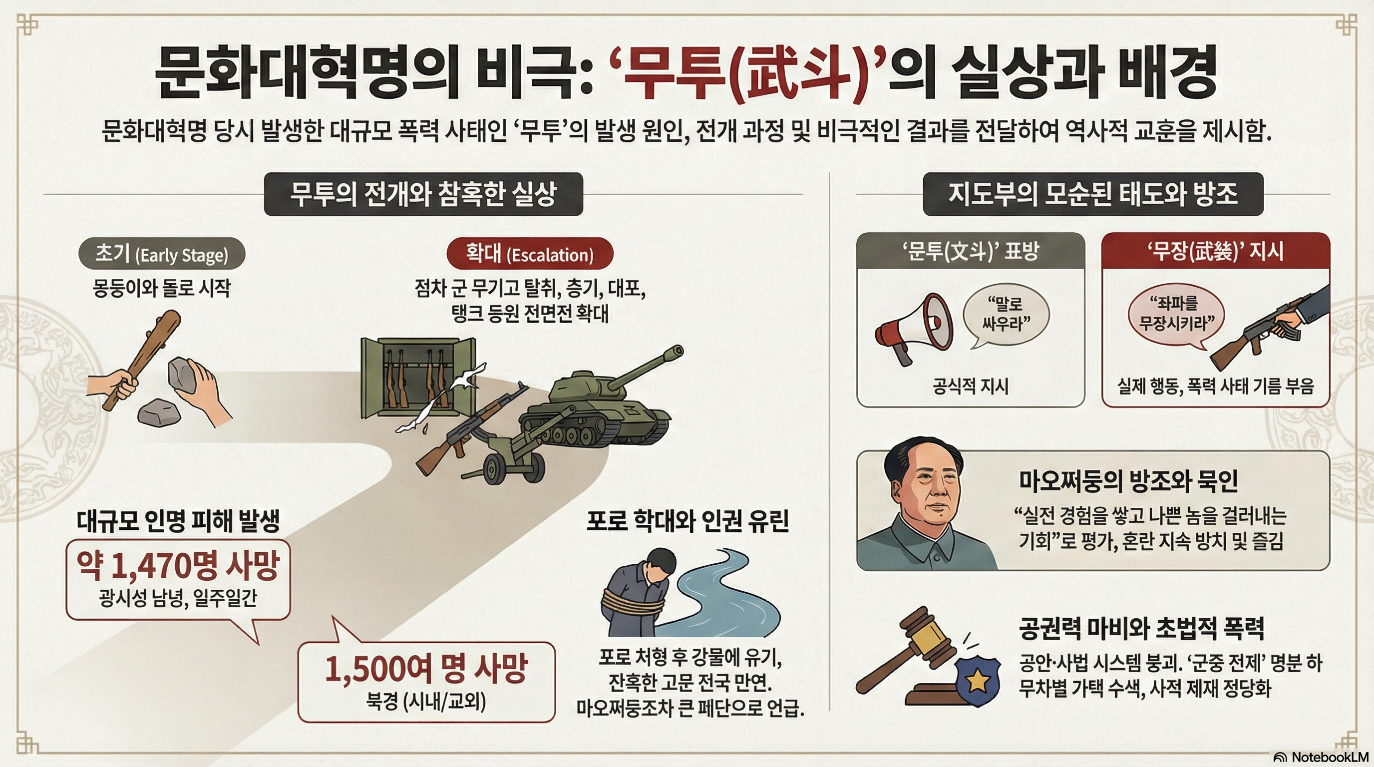 - 권력의 도구화: 무투는 마오쩌둥이 군부를 견제하고 조반파의 힘을 실어주기 위해 전략적으로 방임하거나 조장한 결과였습니다.