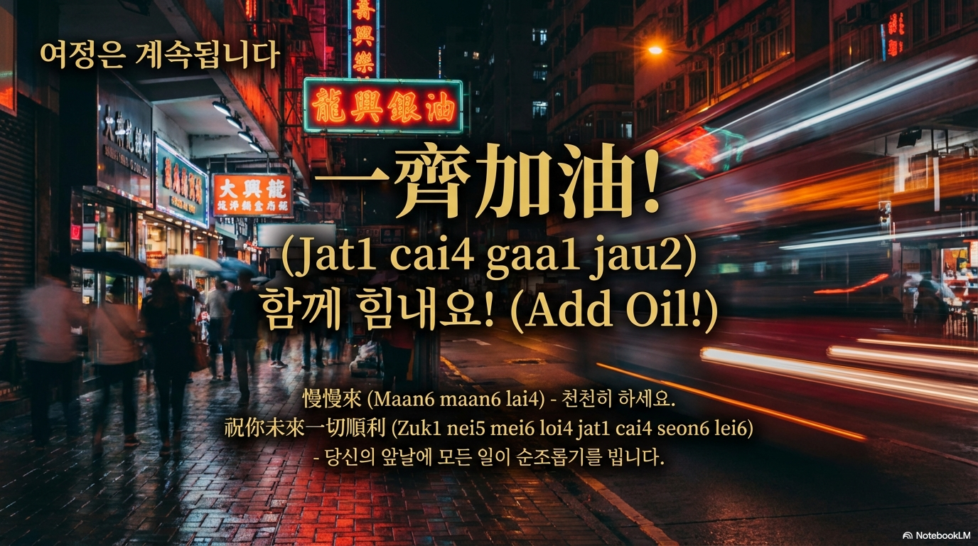 광둥어 학습의 여정은 소스에서 말해주듯 "시작은 어렵지만, 지금은 괜찮습니다(開始係好難,但而家唔錯啦)". 때로는 성조가 헷갈리고 한자가 어렵게 느껴지겠지만, **"걱정 마세요, 모든 것이 잘될 거예요(唔使擔心,所有嘢會好嘅)"**라는 긍정적인 마음으로 임하시길 바랍니다.