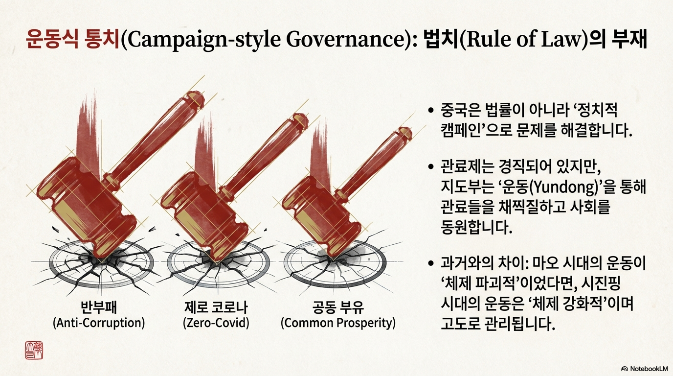 중국에서 국가 기구는 안정적인 행정 기관이라기보다, 끊임없는 '정치 운동'의 도구이자 플랫폼입니다.