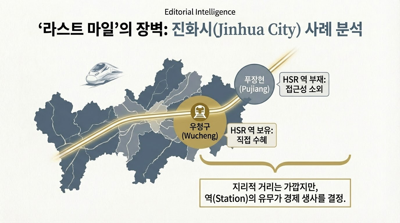 단순히 노선이 지역을 관통하는 것만으로는 부족합니다. 해당 지역에 'HSR 역'이 직접 설치되어 실질적인 접근성이 확보되었는지가 경제적 성패를 가르는 핵심 변수입니다. 역이 없는 지역은 고속철도망에서 소외되는 '라스트 마일(Last Mile)'의 장벽에 가로막혀 인프라 투자의 낙수효과를 거의 누리지 못합니다.