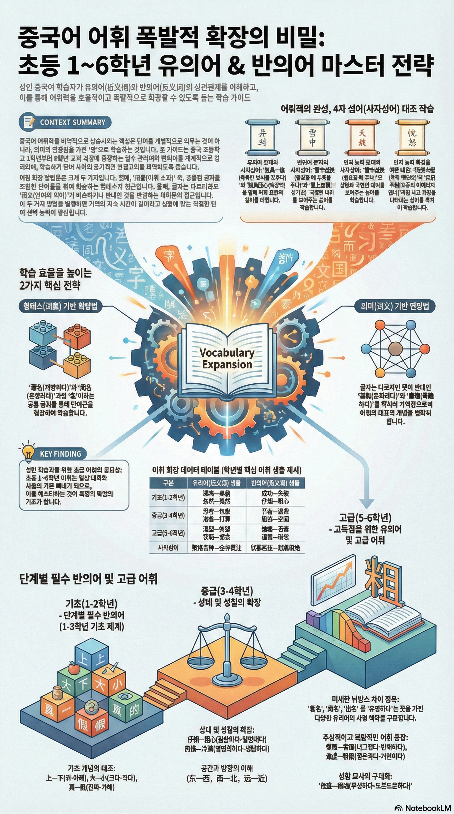 본 보고서는 중국 초등 교육 과정의 핵심인 유의어(近义词)와 반의어(反义词)를 체계적으로 정리한 전문 가이드입니다. 많은 초등학생이 시험에서 유의어와 반의어 문제를 접했을 때 당황하는 이유는 단어를 개별적인 암기 대상으로만 여기기 때문입니다. 어휘 전문가로서 본인은 단어 간의 유기적인 관계를 파악하는 방법론을 통해 기초부터 심화 표현까지 확장할 수 있도록 본 자료를 구성하였습니다.