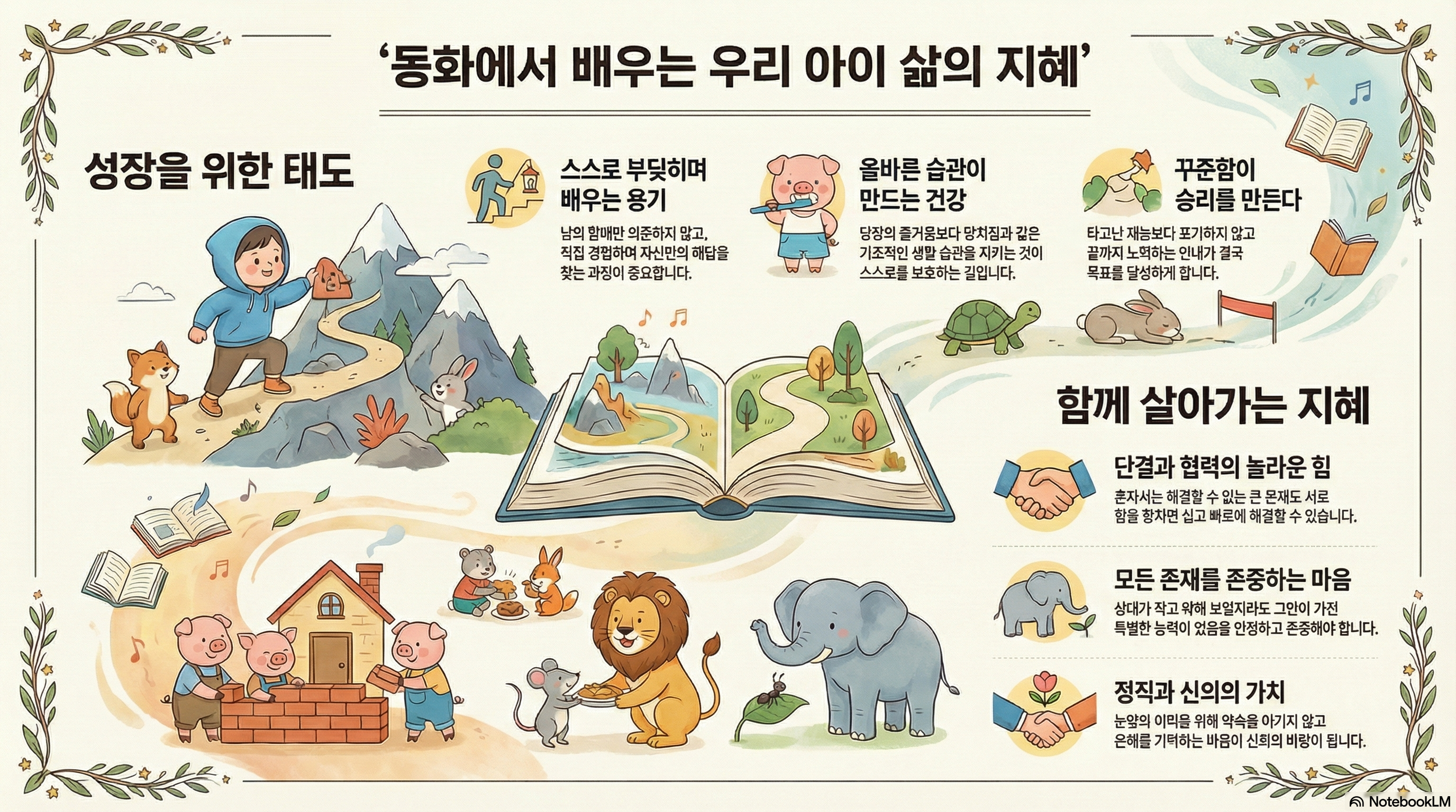 우화 속 갈등 해결 방식은 아동이 사회적 관계에서 마주할 문제들의 대응 시나리오가 됩니다.