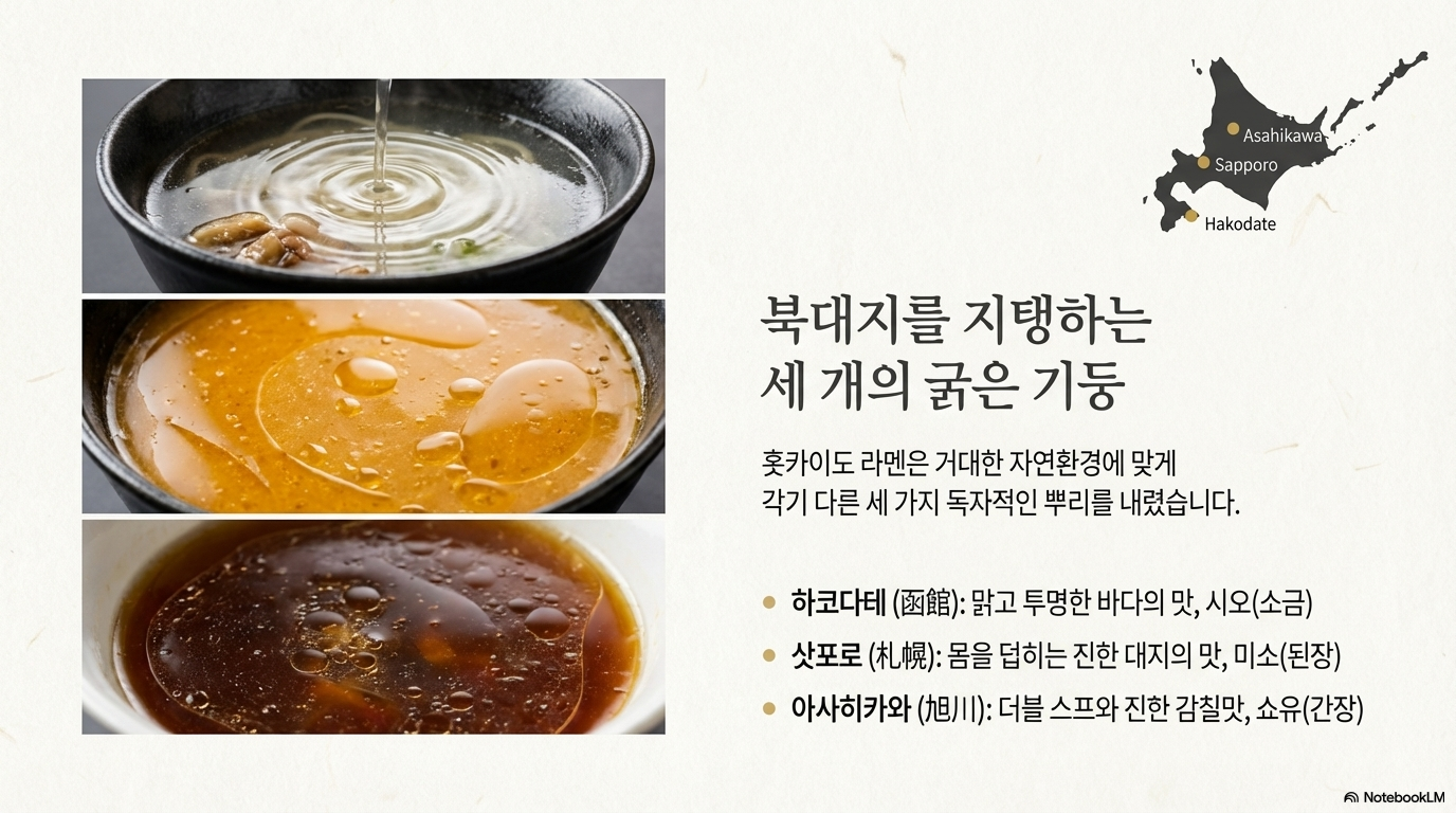 영상 속 탐험대원들이 맛본 홋카이도 라멘의 대표적인 세 가지 맛입니다. 각각의 숨겨진 특징을 기억해두면 메뉴 선택에 큰 도움이 됩니다.