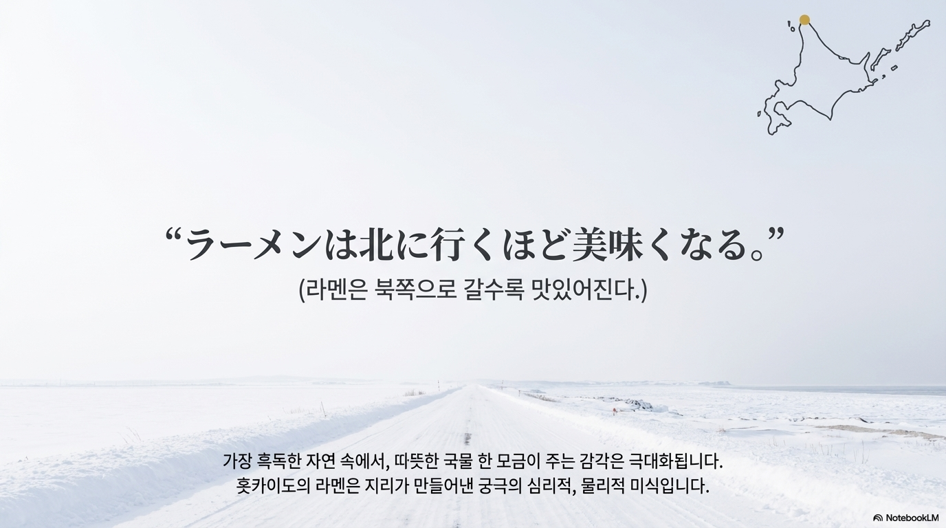 이 여정은 단순한 맛집 탐방이 아니다. 하코다테의 투명한 시오(소금) 라멘부터 최북단 소야 곶의 진한 가리비 라멘, 세계유산 시레토코의 야성미 넘치는 한 그릇에 이르기까지, 각 지역의 혹독한 자연과 독특한 문화, 그리고 그 속에서 살아가는 사람들의 삶이 녹아있는 라멘 한 그릇에 담긴 깊은 이야기를 찾아가는 미식의 순례길이다.