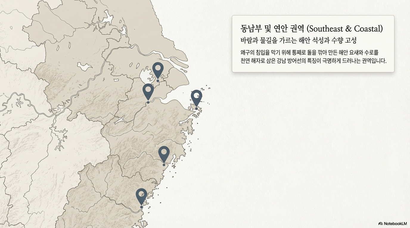 - 인상: 왜구 방어를 목적으로 화강암을 깎아 만든 성벽은 면도날처럼 예리하고 견고합니다. 지형적 한계를 극복하려는 정교한 의지가 시각적으로 드러납니다.
