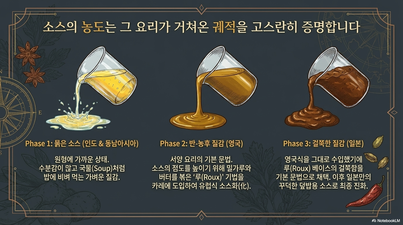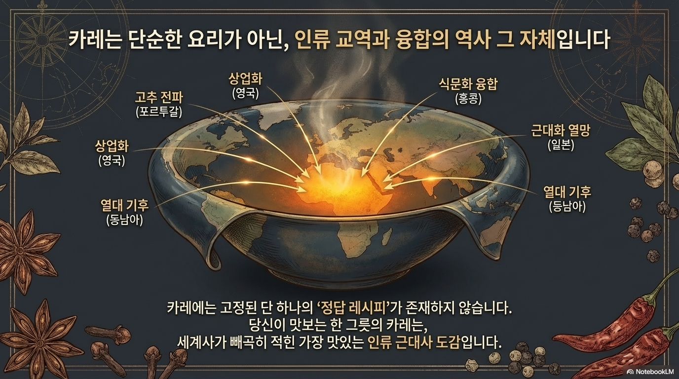커리는 단순한 단일 요리가 아니라, 수세기에 걸친 동서양의 교류와 제국주의 무역 경로가 빚어낸 거대한 '농축 소스 체계'입니다. 인도 현지의 소박한 식문화가 전 세계적인 범용 요리로 자리 잡게 된 과정은 현대 외식 경영자에게 단순한 레시피 이상의 전략적 통찰과 마케팅적 서사를 제공합니다.