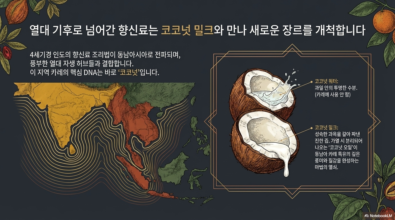 인도와 영국의 표준화된 모델을 넘어, 열대 식재료와 결합하여 독자적인 텍스처를 구축한 동남아시아 커리의 특징을 분석하겠습니다.