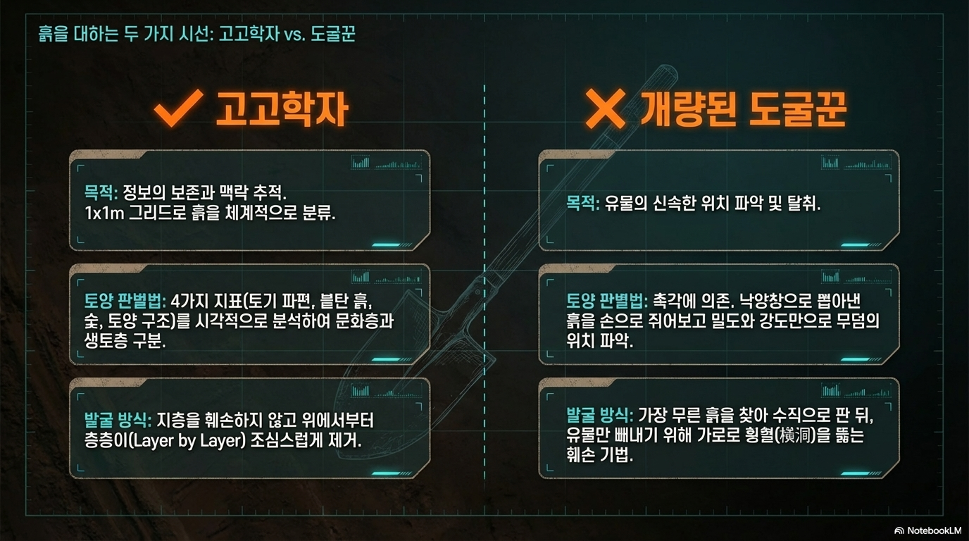 역사는 단순히 종이 위에 쓰인 기록이 아닙니다. 우리가 딛고 서 있는 발밑, 불과 수십 센티미터 아래에 수천 년의 시간이 층층이 압축되어 있습니다. 일반인에게 흙은 그저 흙일 뿐이지만, 고고학자에게 흙은 과거의 범인을 쫓는 결정적인 '지문'입니다.