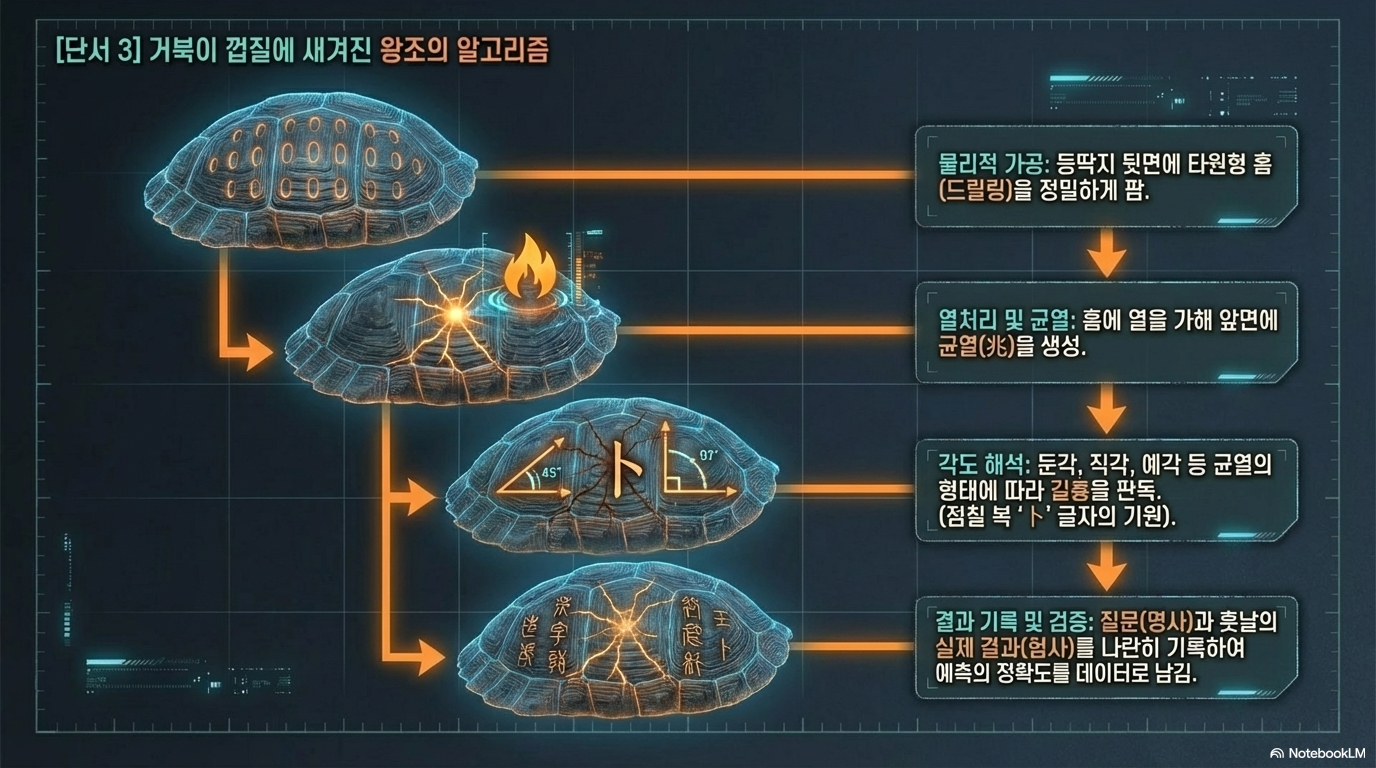 상나라를 지배한 감정은 '공포와 경건'이었습니다. 그들은 국가의 대사를 결정할 때 신의 뜻을 물었고, 그 과정에서 인간을 제물로 바치는 **'인신 공희'**를 국가적 의례로 행했습니다. 이는 단순한 야만이 아니라, 신과의 소통을 위한 가장 처절하고 엄격한 질서였습니다.