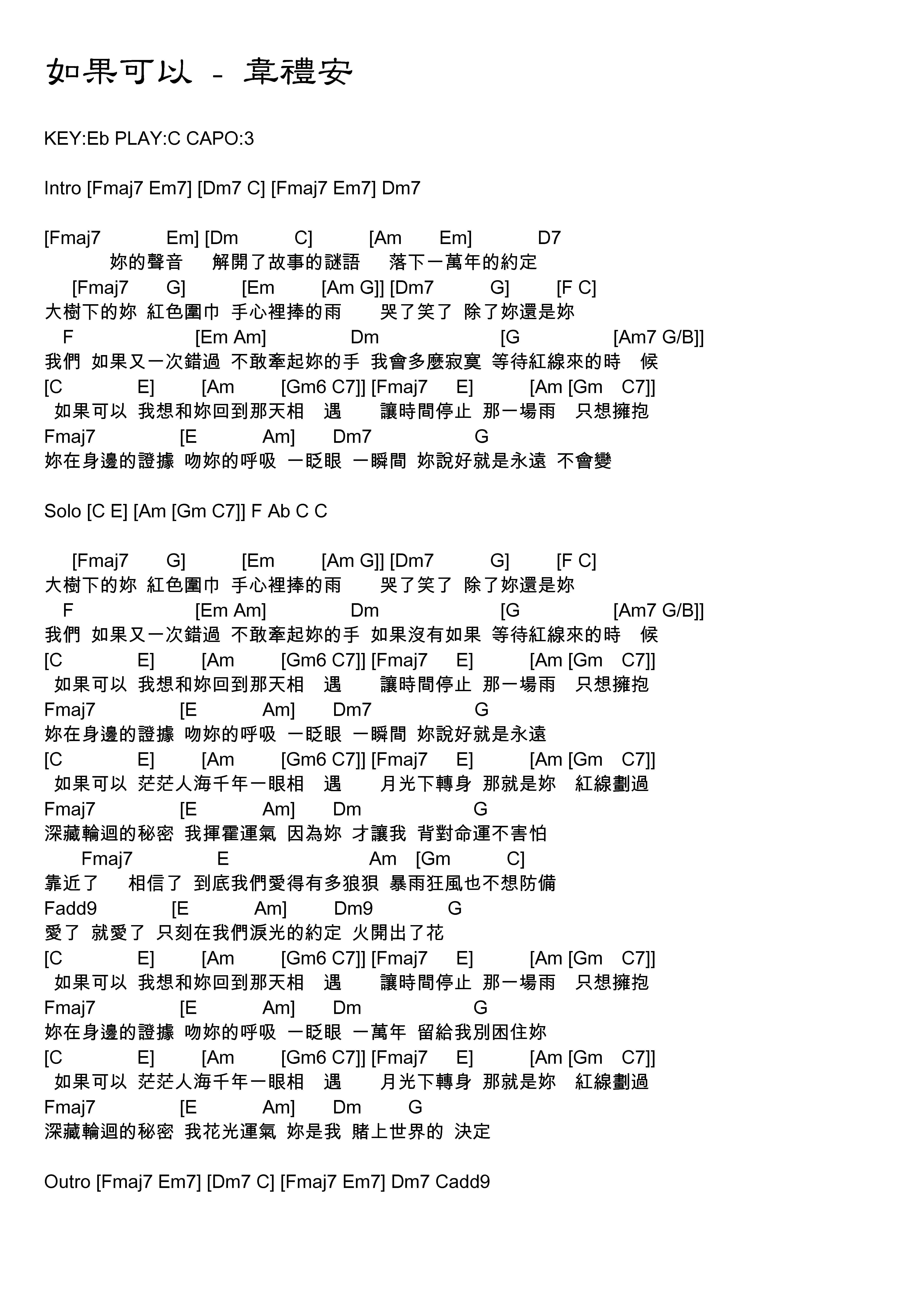 | 如果没有如果等到红线来的时候 | rúguǒ méiyǒu rúguǒ děngdào hóngxiàn láide shíhòu | 만약이 없어도 붉은 실을 기다리며 | [如果没有如果]: '만약'이라는 가정이 없다 해도(강조). |