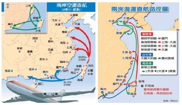 2008년 마잉주 취임 후 ‘대삼통’이 본격적으로 전개되며 항공 노선, 우편 경로, 상무 직통이 점차 형성되었다.
