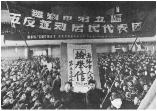 值得注意的是,这场运动当中所说的“反对铺张浪费”、“反对贪污盗窃”、“反对投机倒把”实际上都是虚,所谓“打击反革命破坏活动”才是实。 (Zhídé zhùyì de shì, zhè chǎng yùndòng dāngzhōng suǒshuō de “fǎnduì pūzhāng làngfèi”, “fǎnduì tāngwū dàojiè”, “fǎnduì tōujī dǎobǎ” shíji shang dōu shì xū, suǒwèi “dǎjí fǎn gémìng pòhuài huódòng” cái shì shí.) 주목할 만한 점은, 이 운동에서 말하는 ‘사치와 낭비 반대’, ‘탐오와 절도 반대’, ‘투기 행위 반대’는 사실 모두 허울이었고, 이른바 ‘반혁명 파괴 활동 타격’이야말로 실질적인 목적이었다는 것입니다.