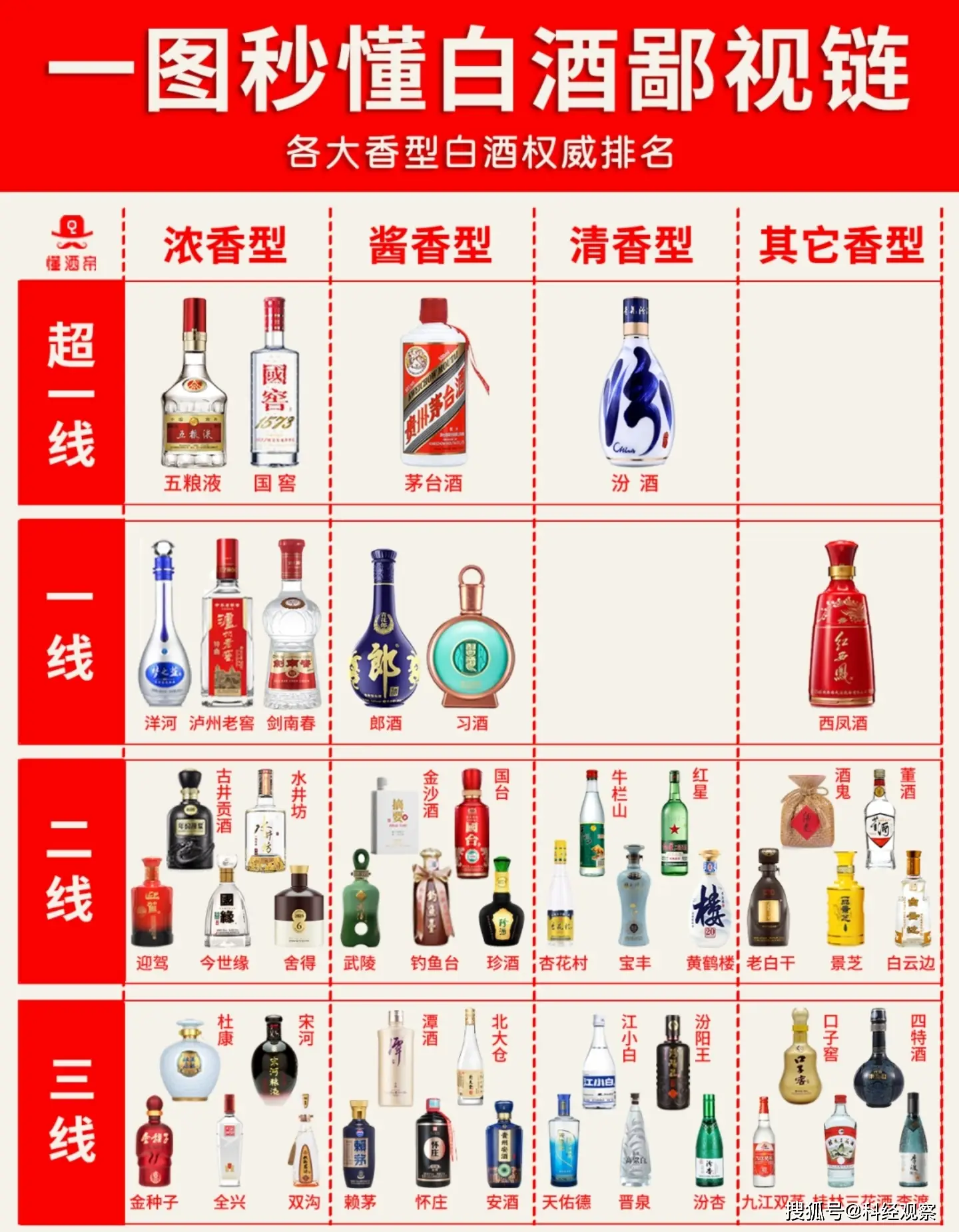 - 清香型:以汾酒为代表,香气“清香纯正,具有乙酸乙酯为主体的优雅、谐调的复合香气”。例如,汾酒产自山西汾阳,历史悠久,曾被列为宫廷御酒。二锅头、红星也属于清香型。