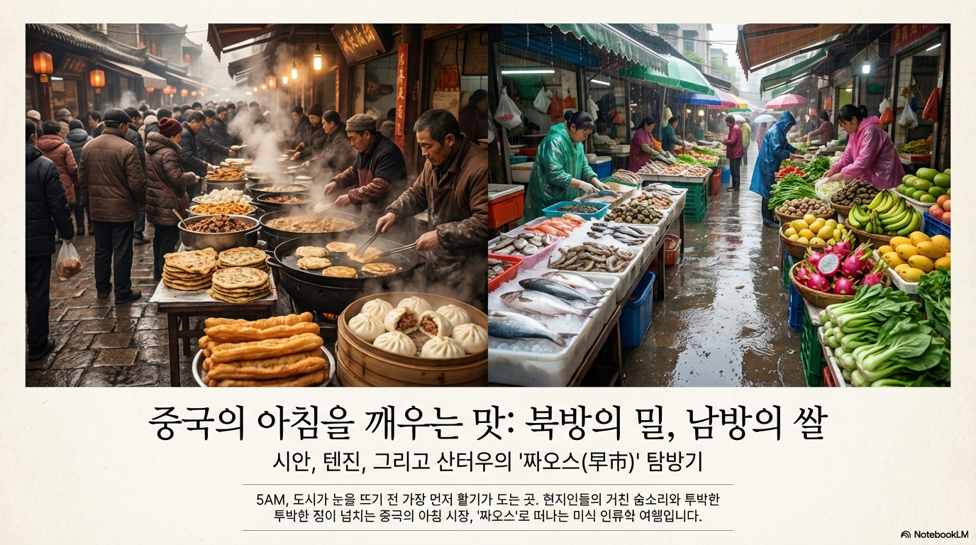 갓 쪄낸 만두에서 피어나는 따끈한 김, 지글지글 전병이 익어가는 고소한 소리, 상인들의 활기찬 외침이 어우러진 곳. 중국의 아침 시장은 단순히 배를 채우는 공간을 넘어, 그 지역의 삶과 문화(烟火气)를 가장 생생하게 느낄 수 있는 매력적인 장소입니다. 이른 아침의 활기 속으로 걸어 들어가는 순간, 여러분은 맛있는 냄새와 낯선 이름의 음식들 앞에서 설렘과 동시에 작은 막막함을 느낄지도 모릅니다.