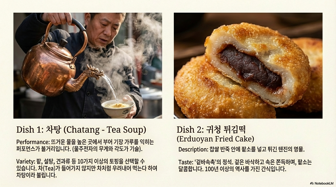따뜻한 국물로 속을 데웠으니, 이제 고소한 기름 냄새가 유혹하는 전병과 튀김의 세계로 떠나볼까요?