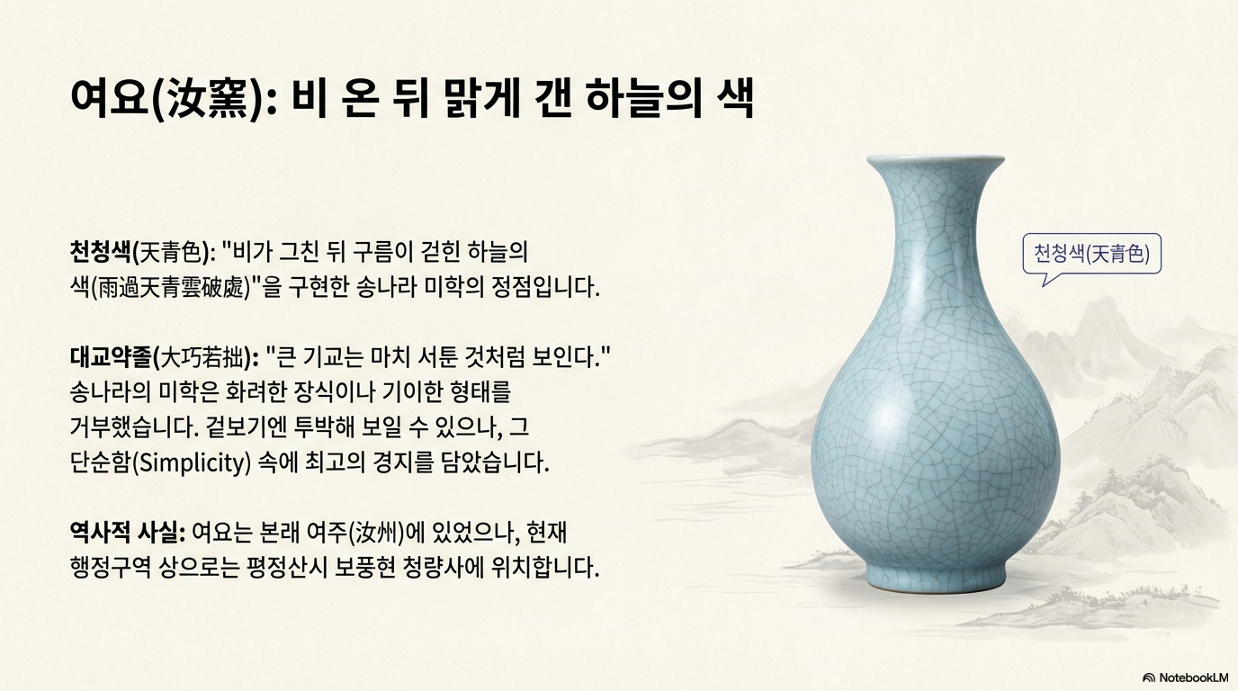 - 도자기: 특히 송나라의 도자기는 단순하면서도 깊이 있는 아름다움으로 유명했는데, 그중에서도 여주(汝州) 지역의 이름을 딴 '여요(汝窯)' 자기는 '비가 갠 뒤의 푸른 하늘색'이라 불리며 최고의 예술품으로 평가받았습니다.