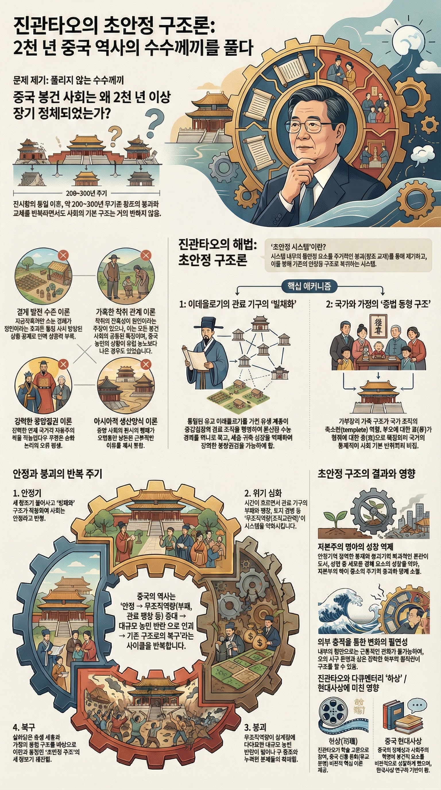 본 가이드는 진관타오의 '초안정구조론'을 중심으로 중국 봉건사회의 구조적 특성과 장기지속성, 그리고 조반니 아리기와 간양의 시각을 통해 현대 중국의 발전 모델을 이해하기 위해 작성되었습니다.