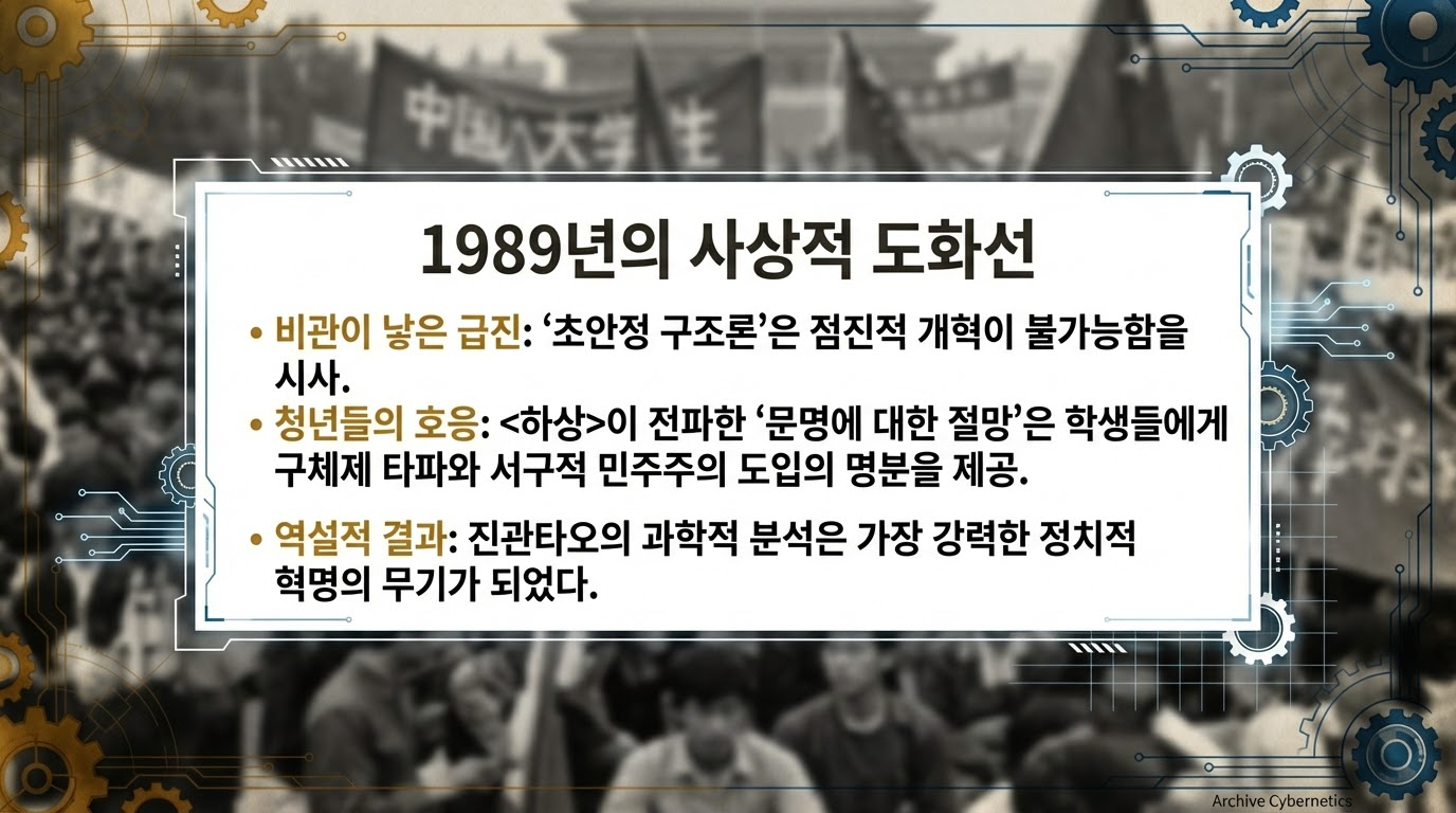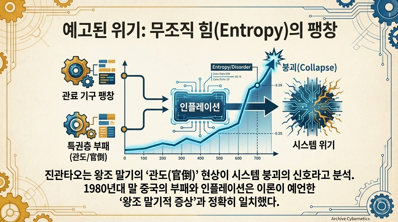 시스템이 가동될수록 내부에는 이를 붕괴시키는 힘인 **'무조직 역량(无组织力量)'**이 쌓입니다. 이는 시스템이 스스로를 유지하기 위해 통제를 강화할수록 부작용으로 인해 기하급수적으로 늘어나는 **'가역 불가능성'**과 **'자기 증식성'**을 지닌 시스템의 독소입니다.