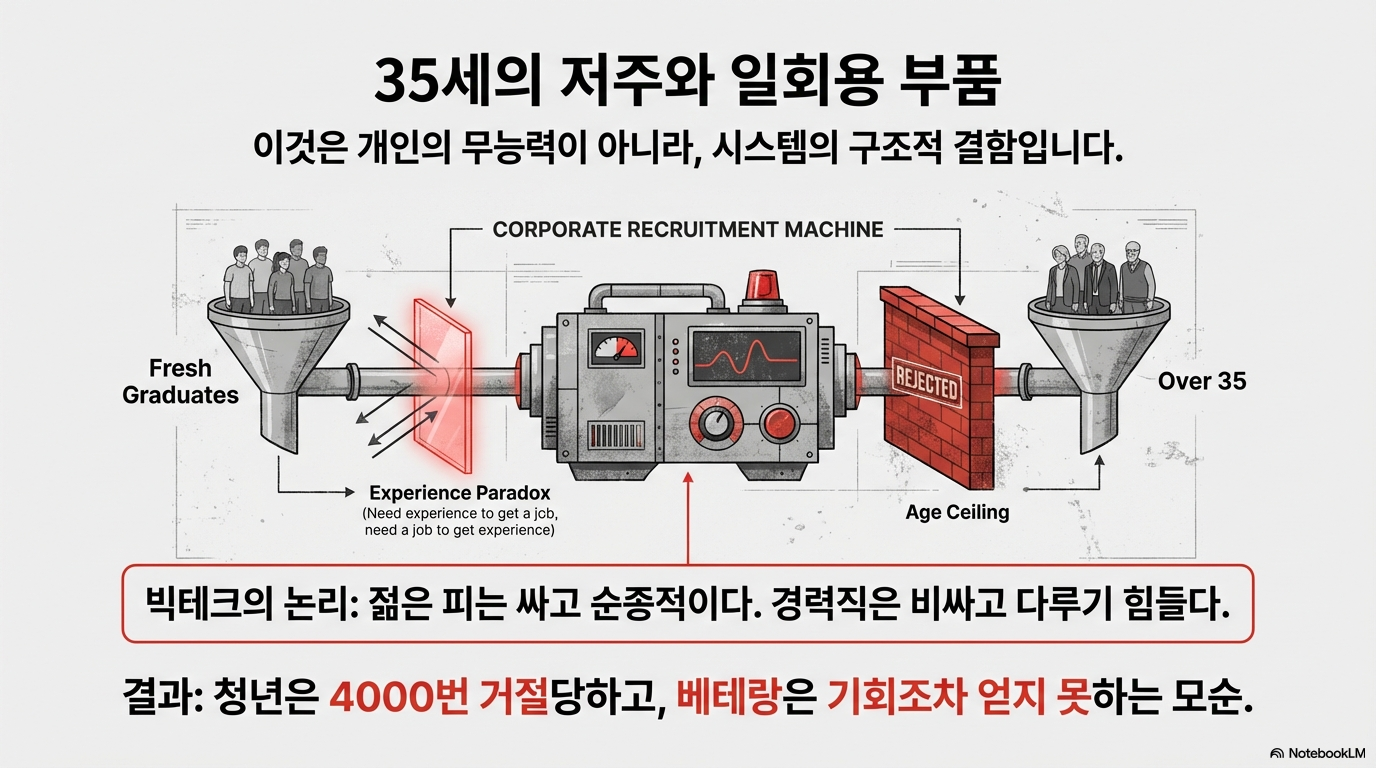 기업의 극단적인 가성비 중심 인력 운용은 숙련 노동자를 시장 밖으로 밀어내는 ‘35세 낙인’을 고착화하고 있습니다.