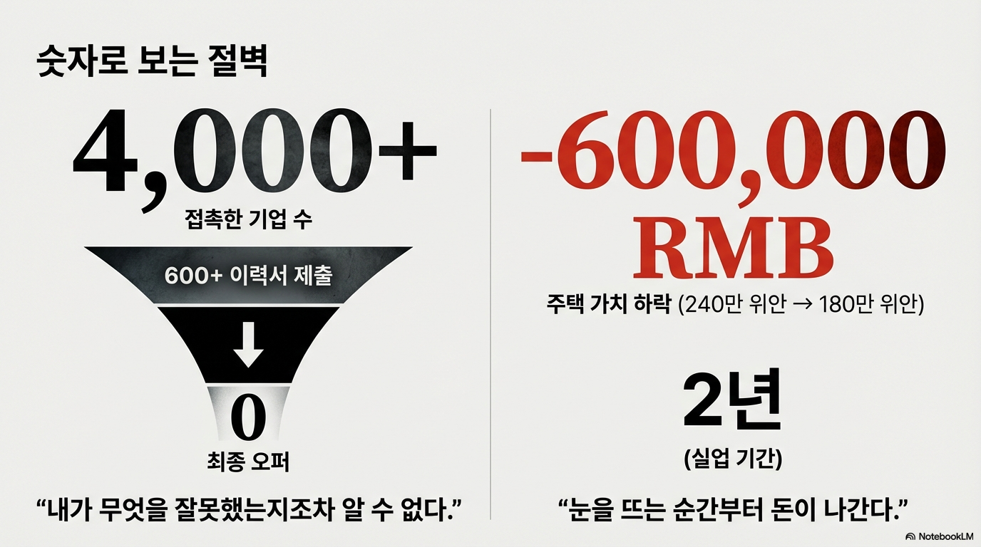 4. 취업난의 수치와 체감 온도: 4,000번의 거절과 80위안의 삶