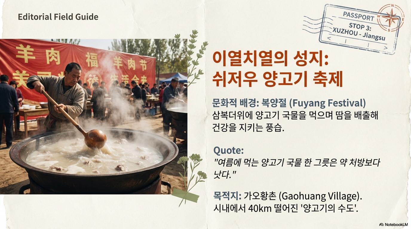 쉬저우 사람들에게 여름은 '양고기의 계절'입니다. 이들은 "삼복더위에 양탕 한 그릇이면 의사의 처방전이 필요 없다"는 믿음으로 이열치열의 미학을 실천합니다.