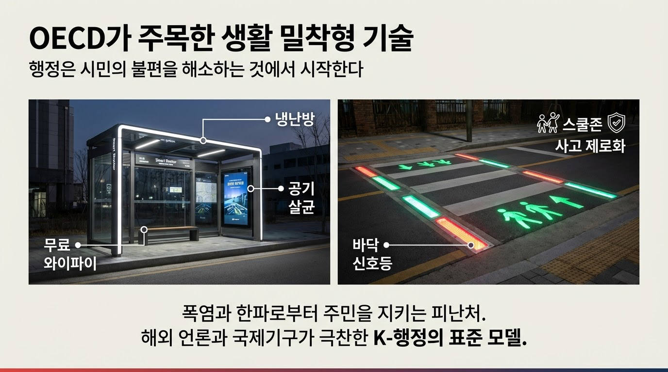 2. OECD도 주목한 '배려의 기술' — 스마트 쉼터와 횡단보도