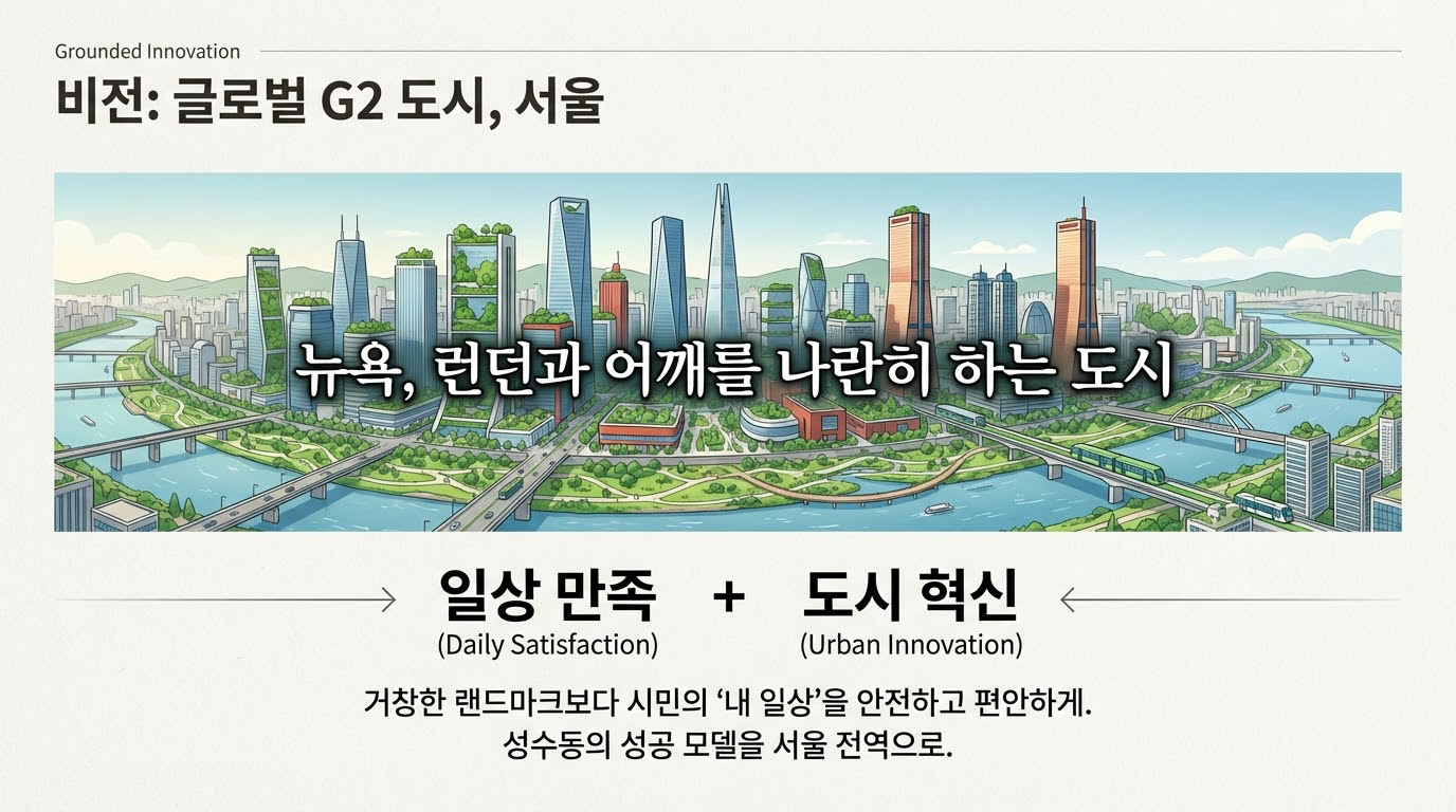 성동구는 거창한 담론에 매몰되지 않고, 시민의 '발'과 '휴식'이라는 실용적 가치에 집중합니다.