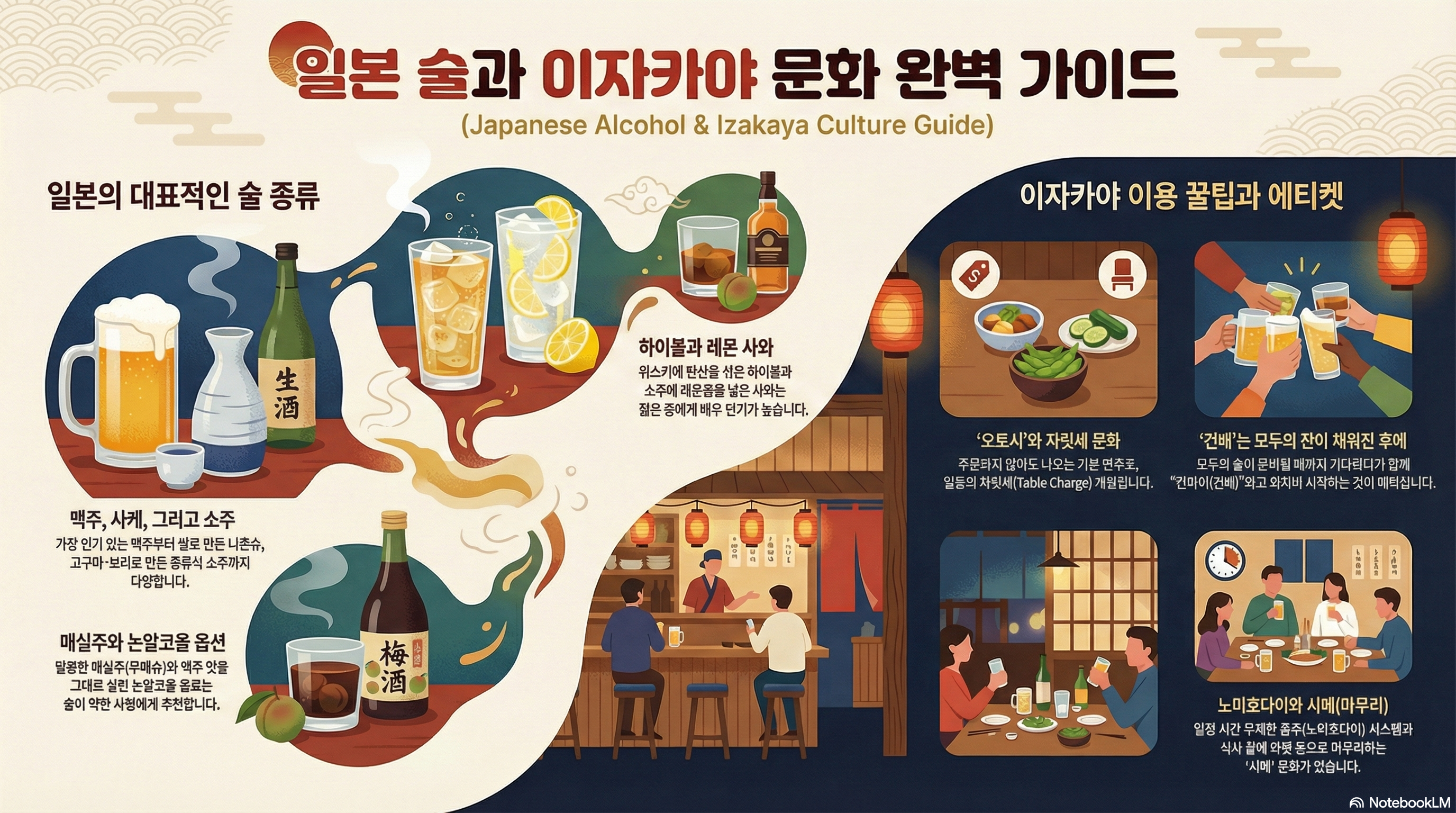 안녕하세요! 일본의 술 문화를 깊이 있게 이해하고 즐기고자 하는 학습자 여러분을 환영합니다. 일본의 술자리는 단순히 갈증을 해소하는 장소를 넘어, 상대에 대한 배려와 정교한 미식의 논리가 담긴 문화적 공간입니다. 본 가이드를 통해 일본 술자리의 정수인 '이자카야'의 시스템부터 주종별 핵심 매너까지 완벽하게 마스터해 보시기 바랍니다.
