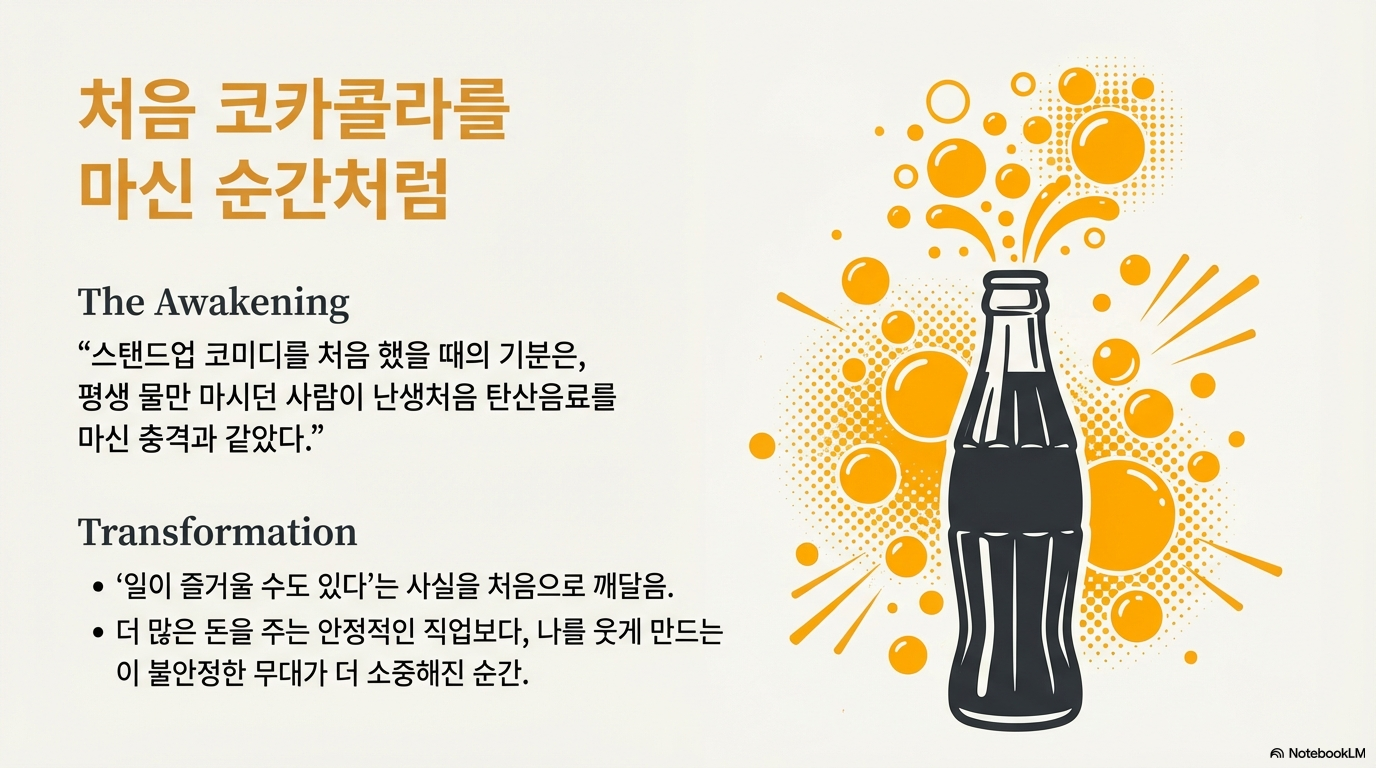 但我現在想開了。如果有一天我真的寫不出好笑的段子了,那說明我該去體驗新的生活了。 (Dàn wǒ xiànzài xiǎngkāi le. Rúguǒ yǒu yìtiān wǒ zhēnde xiě bù chū hǎoxiào de duànzi le, nà shuōmíng wǒ gāi qù tǐyàn xīn de shēnghuó le.) 하지만 이제는 마음을 비웠어요. 만약 정말로 더 이상 웃기는 대본을 쓸 수 없게 된다면, 그건 이제 새로운 삶을 체험해 볼 때가 되었다는 뜻이겠죠.