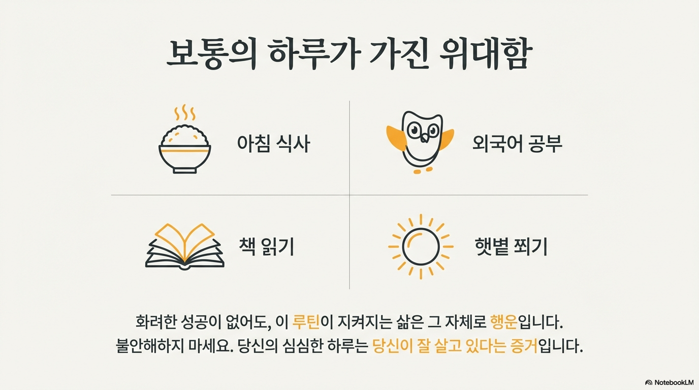 就是你以為很平庸的生活很容易達到,這完全是年輕人的誤解。 (Jiùshì nǐ yǐwéi hěn píngyōng de shēnghuó hěn róngyì dádào, zhè wánquán shì niánqīngrén de wùjiě.) 평범한 삶을 얻는 게 쉬운 일이라고 생각하는 것, 그건 온전히 젊은이들의 오해입니다.
