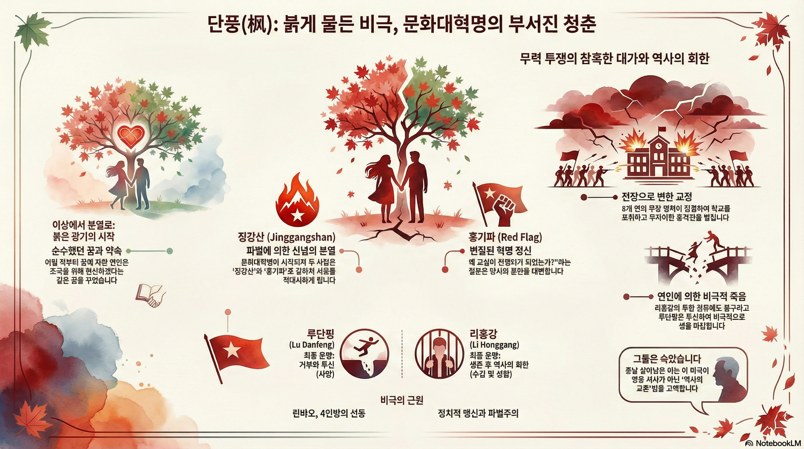 역사학자로서 필자는 20세기 중국의 문화대혁명을 단순한 권력 투쟁의 산물로 보지 않습니다. 그것은 국가적 동원 체제가 어떻게 청년의 실존적 자아를 말소하고, 개인이 지닌 보편적 인간성을 이데올로기의 부속품으로 전락시켰는지를 보여주는 가장 참혹한 보고서입니다. 본 연구는 당시의 비극을 다룬 기록물인 '단풍(枫)'의 서사를 바탕으로, **"왜 교실이 전장이 되었는가?"**라는 질문을 던집니다.