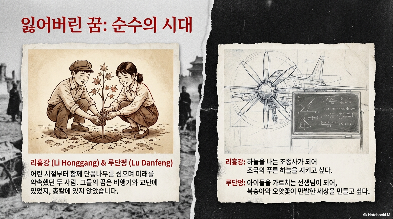 리훙강은 하늘을 나는 '비행기 조종사'를, 루단펑은 변강에서 아이들을 가르치는 '교사'를 꿈꿨습니다. 그러나 린뱌오와 4인방이 설계한 광기의 메커니즘은 그들의 꿈을 앗아가고 손에 총과 수류탄을 쥐여주었습니다.