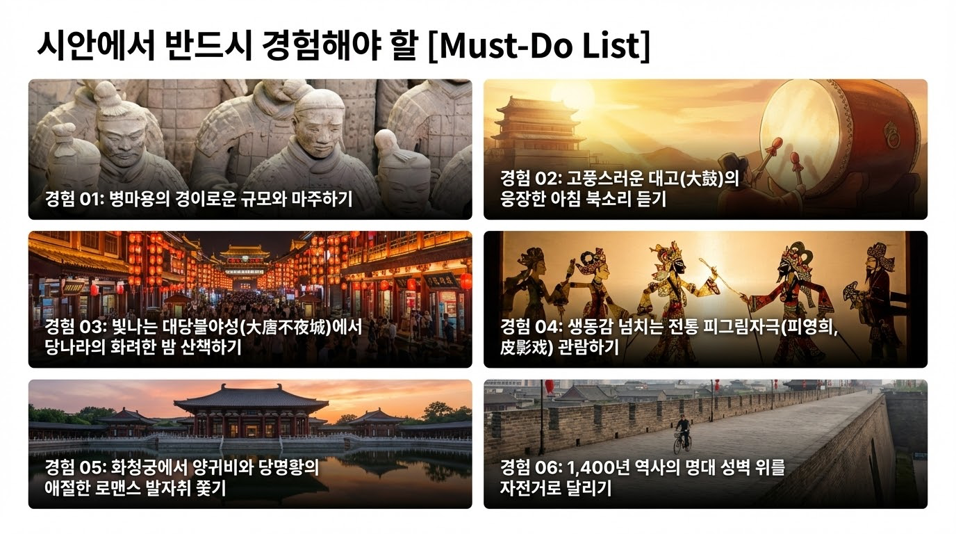 이 가이드와 함께 당신의 시안 여정이 단순한 구경을 넘어, 인류 문명의 위대한 발자취를 온몸으로 느끼는 통찰의 시간이 되기를 바랍니다.