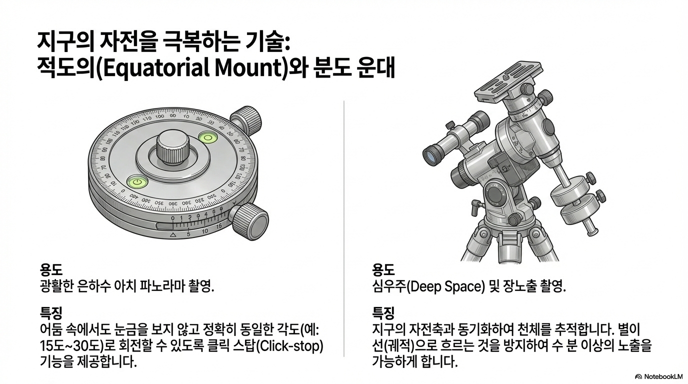 - 적도의 필요성: 천체의 일주 운동 추적 및 장기 노출 시 점상 유지.