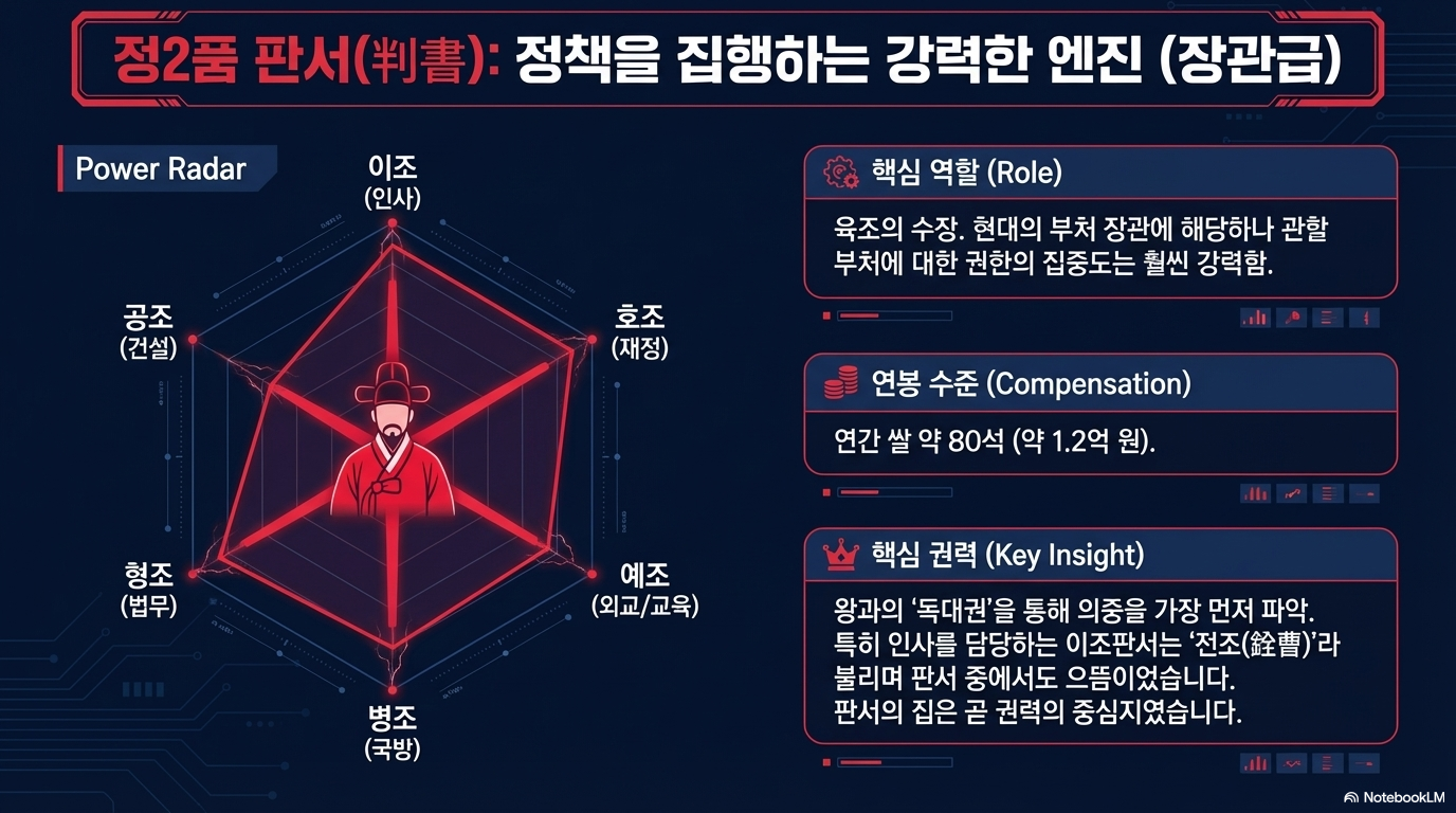- 당하관 (正3품 하계 이하 正6품 이상): 실무 부서를 관리하고 감독하는 중견 관리자층.