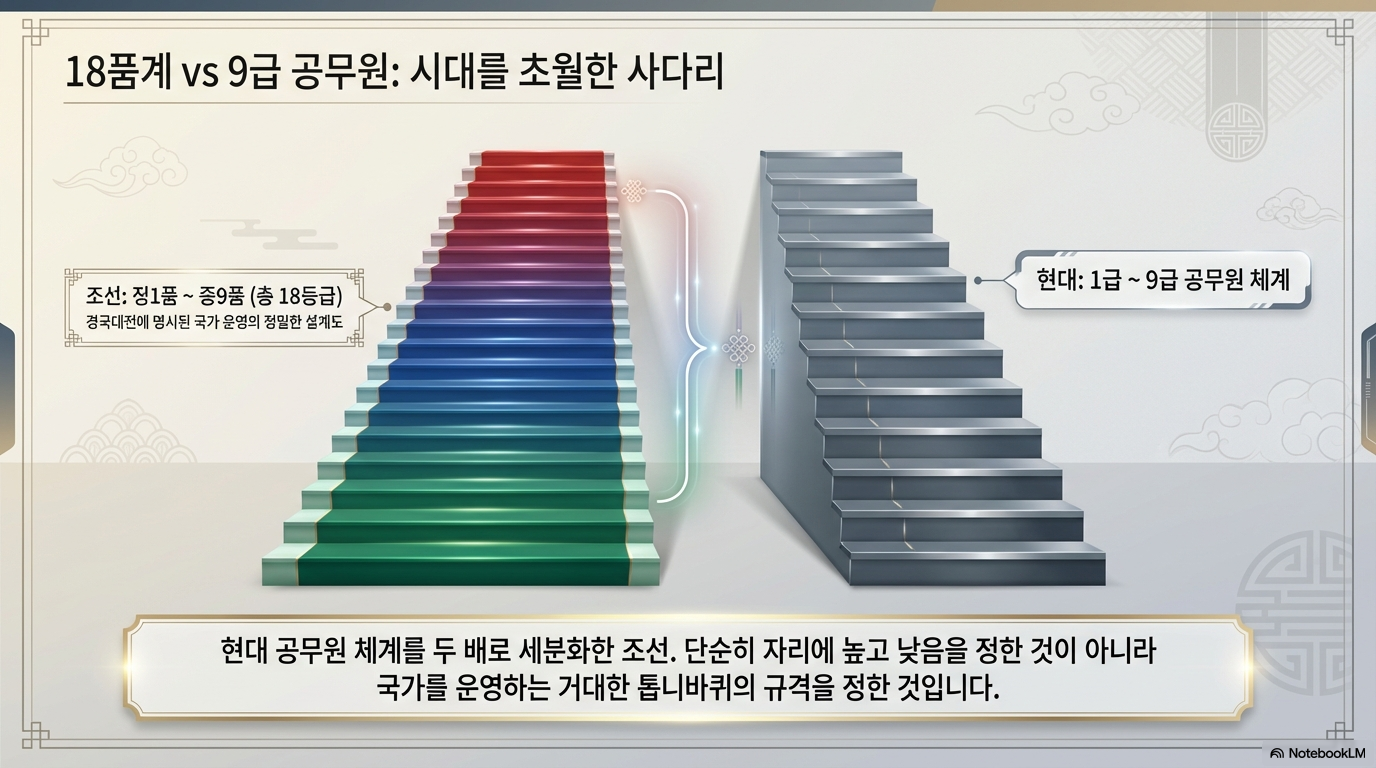 조선의 9품 18급 체계와 현대 대한민국의 일반직 공무원 1~9급 체계는 서열화된 구조라는 점에서는 유사하나, 그 운영 원리는 근본적으로 다르다.
