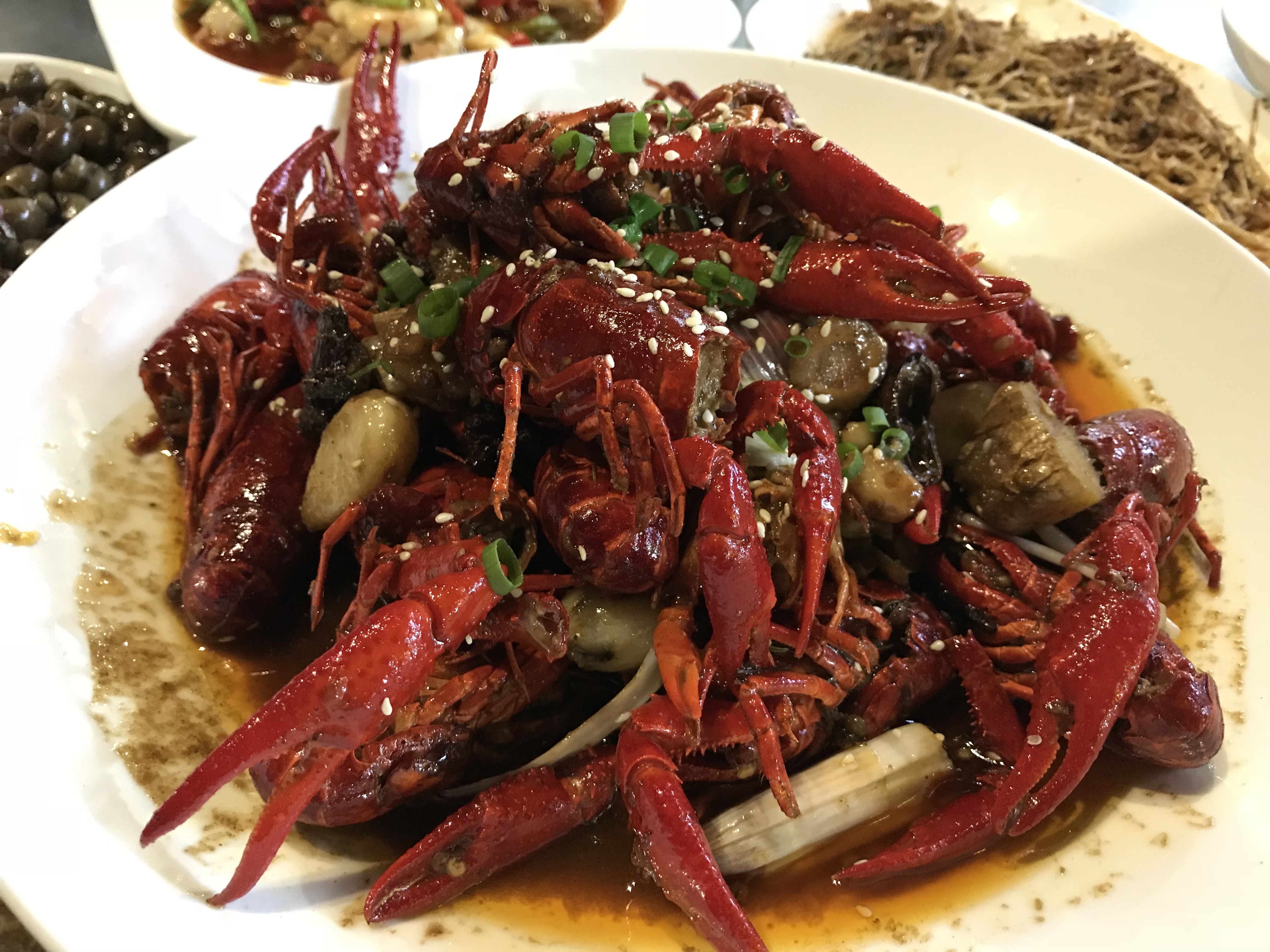 제가 좋아하는 뭘 먹었냐고요? 바로 민물가재(샤오룽샤)예요.