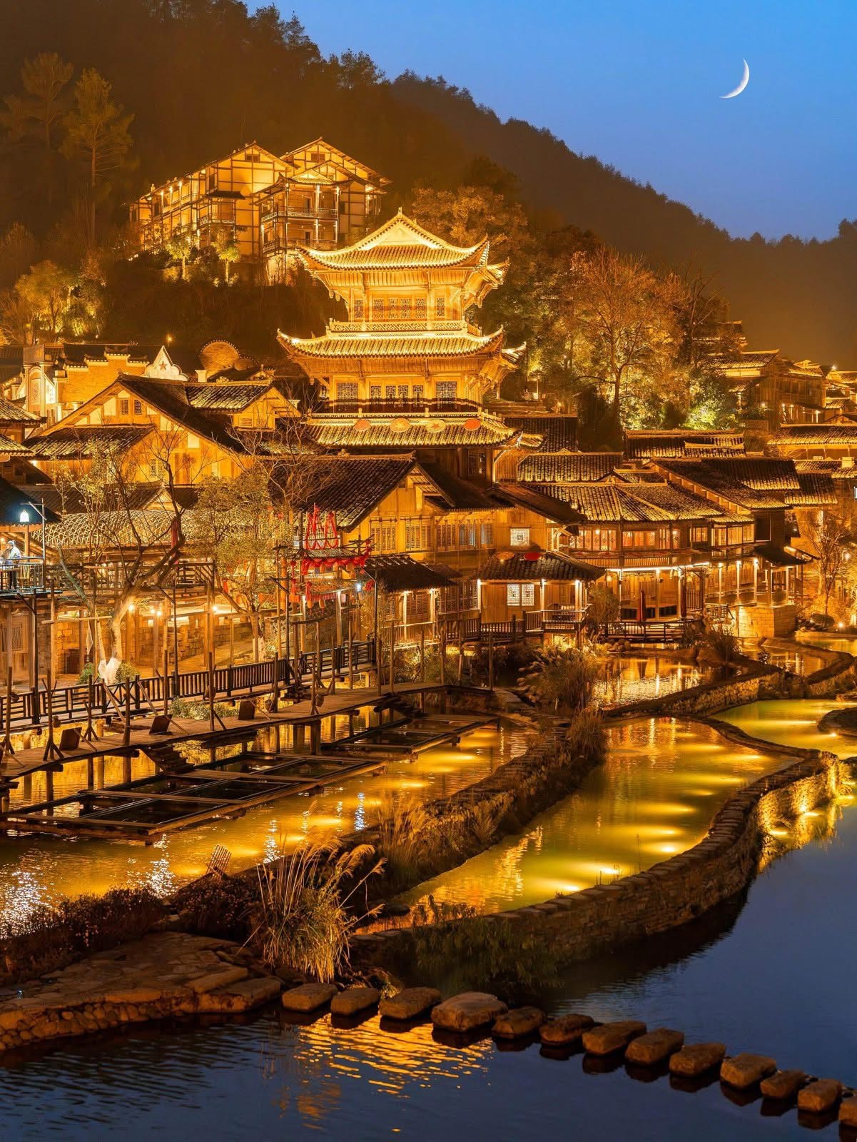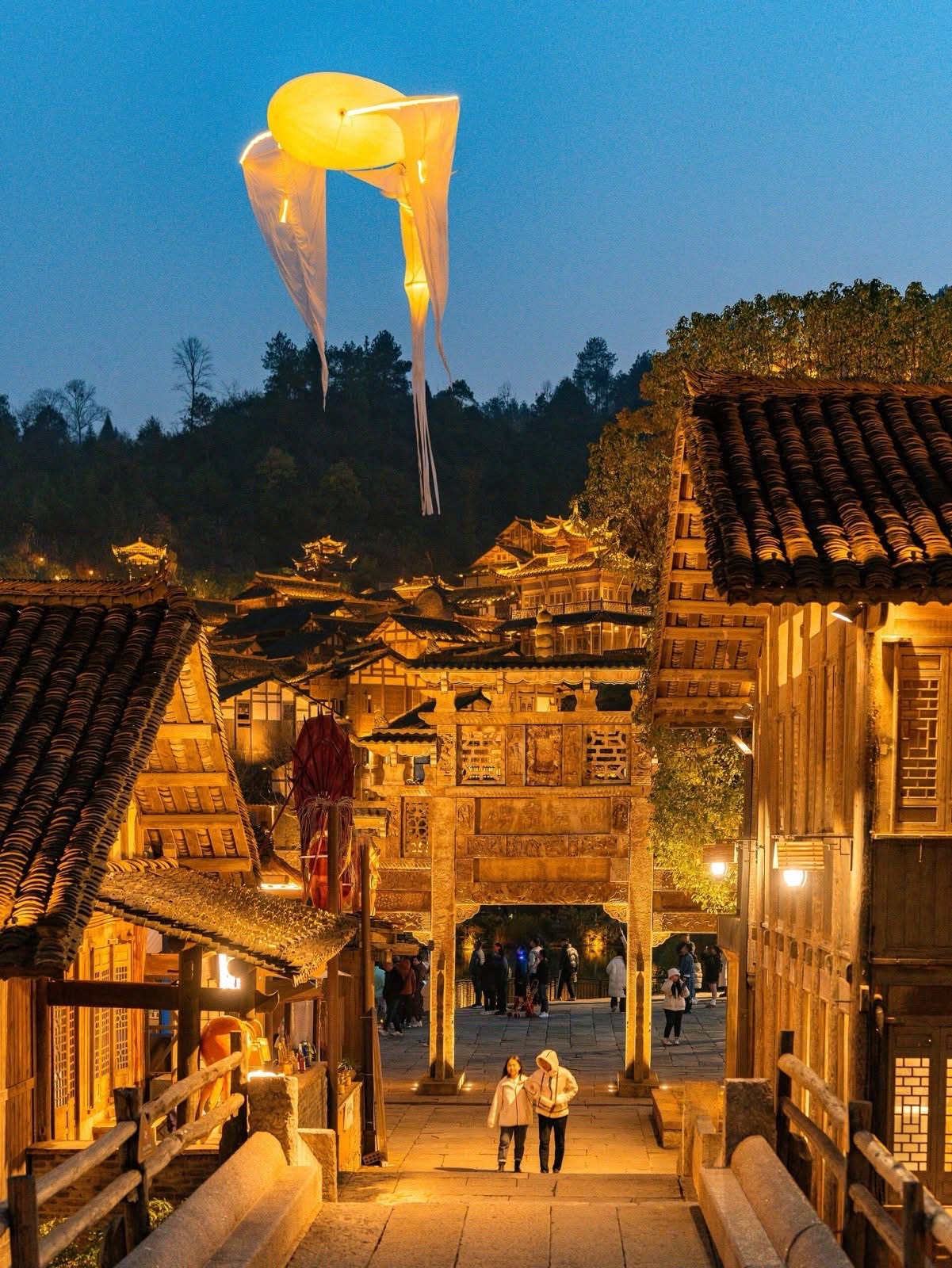 - 八點左右,現代黑科技與古建築的完美結合,形成壯觀的烏江星音樂水舞秀和無人機表演。