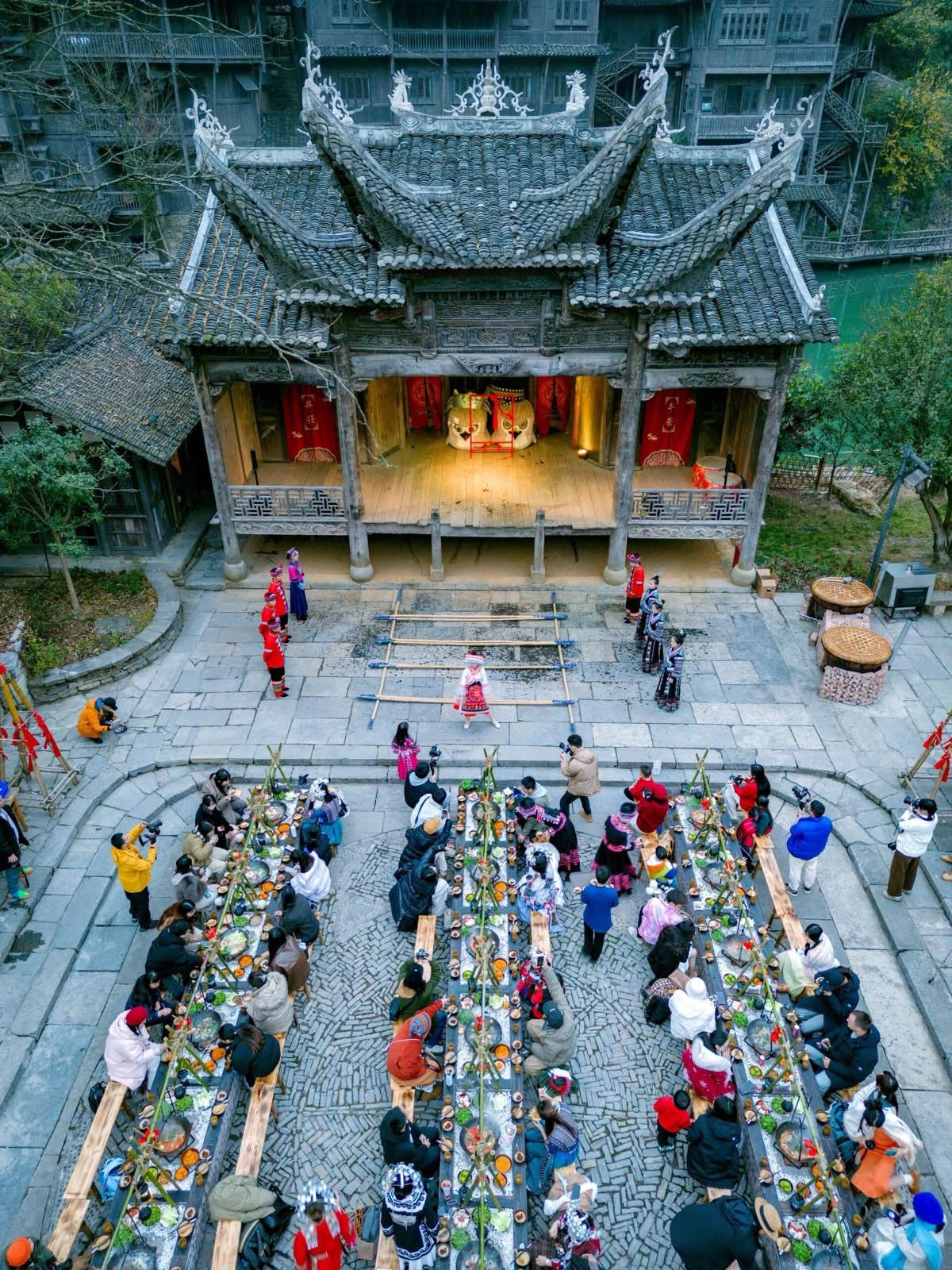 - wǎn fàn shí jiān jiù shì zhù míng de diào guō yàn le, kě xuǎn qīng tāng yáng zá guō hé hóng tāng bāo guō tāng, chū cǐ zhī wài yǒu xǔ duō mín sú biǎo yǎn, biàn liǎn, duō mín zú yán chàng děng.